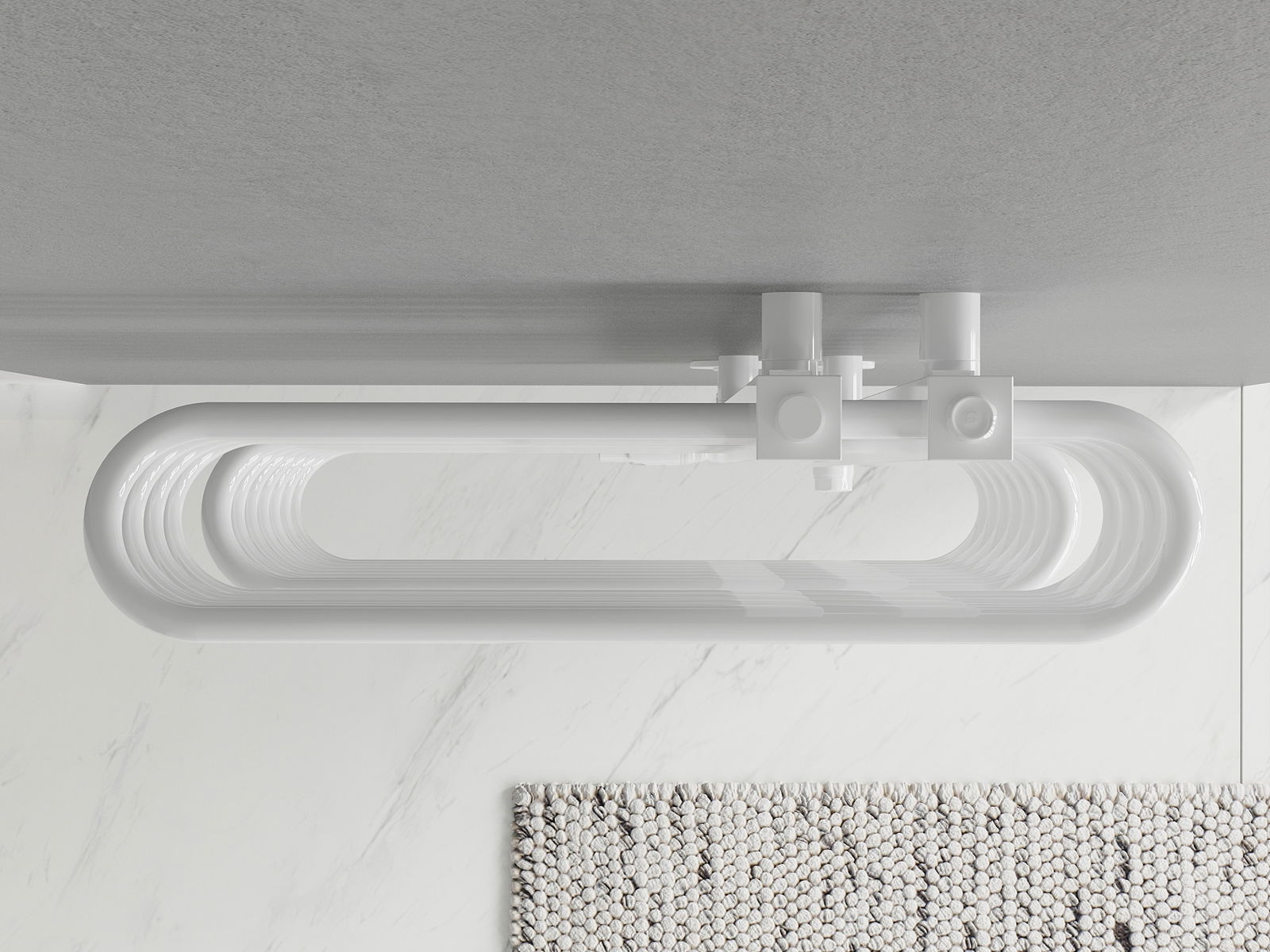 Produkt aus héichwäertege Materialien, déi resistent géint Dofegeet a Korrosioun sinn, doduerch behält et seng attraktiv Ausgesin an Funktionalitéit laangfristeg, onofhängeg vum Feuchtigkeitsniveau am Raum.