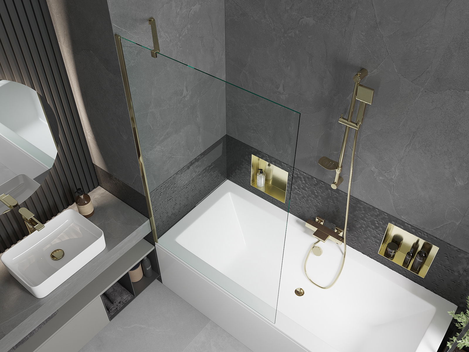 Effikass Schutz viru Waasser versprëtzen beim Baden. De Paravent huet Dichtungen, déi sech perfekt un d'Glasfläche an de Rand vun der Buedbidden upassen. Eng funktionnell Léisung déi Sécherheet an einfach Botzen erméiglecht.