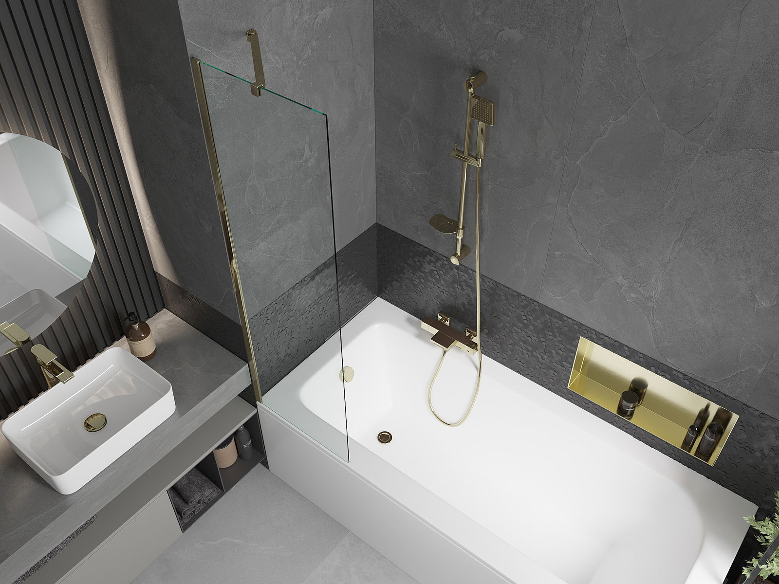 Effikass Schutz viru Waasser versprëtzen beim Baden. De Paravent huet Dichtungen, déi sech perfekt un d'Glasfläche an de Rand vun der Buedbidden upassen. Eng funktionnell Léisung déi Sécherheet an einfach Botzen erméiglecht.