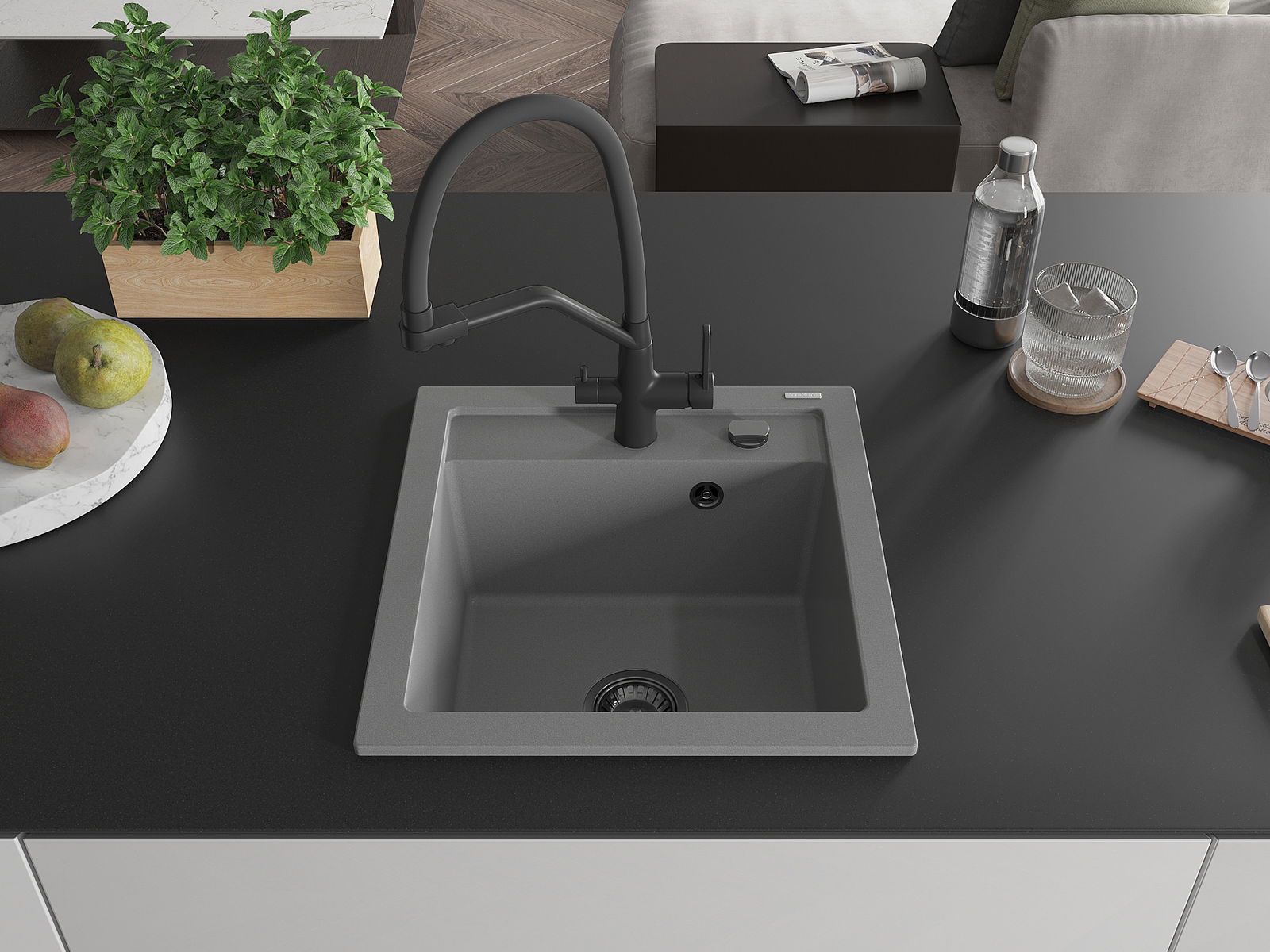 Den Ëmwäschbecken ass aus héichwäertege Granit gemaach. Et stellt eng elegant awer virun allem praktesch Ergänzung fir all Kichen duer, onofhängeg vun hirem Stil. Déi héich Qualitéit an Haltbarkeet vum Granit suergen fir méi järelaang Benotzung.