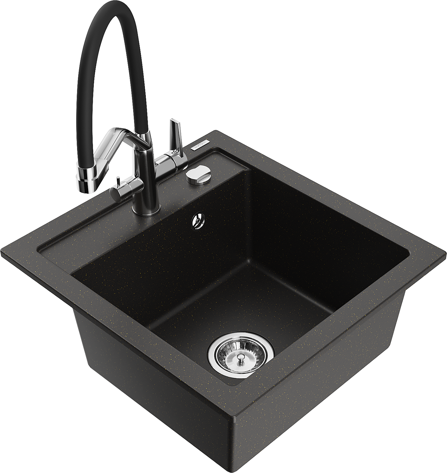 Mexen Vito 1-Komponenten Granit Spullsteen mat Kichekraan Duo, schwaarz/gëllene Metallic - 6503-75-671701-07