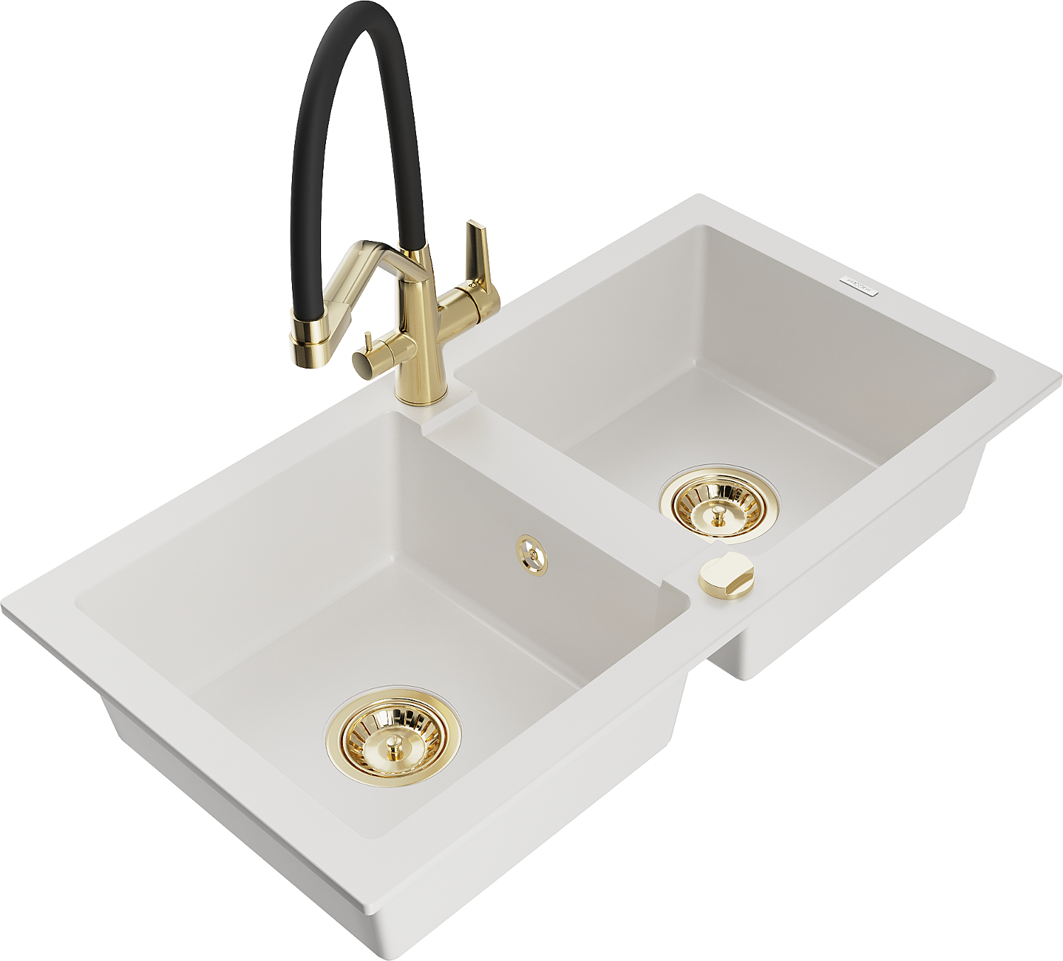 Mexen Mario granitten 2-Kummer-Spullsteen mat Kichendux Duo, wäiss - 6504-20-671701-57-G