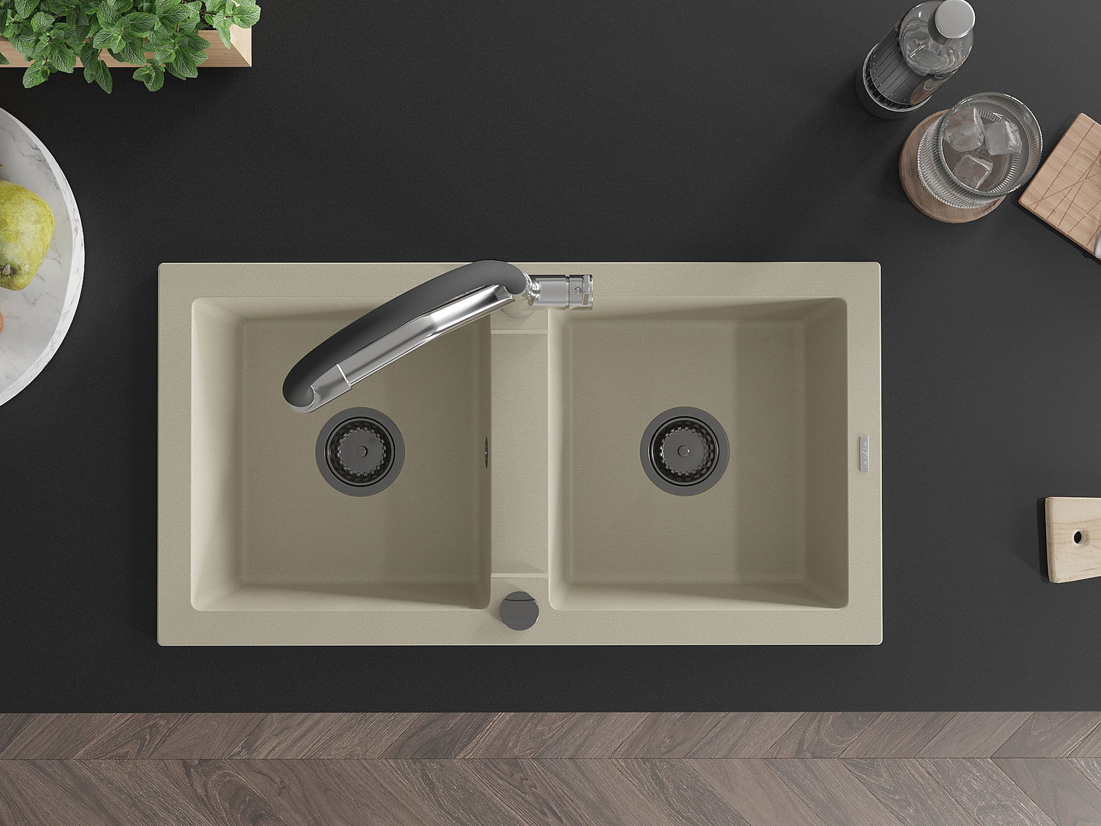 Den Ëmwäschbecken ass aus héichwäertege Granit gemaach. Et stellt eng elegant awer virun allem praktesch Ergänzung fir all Kichen duer, onofhängeg vun hirem Stil. Déi héich Qualitéit an Haltbarkeet vum Granit suergen fir méi järelaang Benotzung.