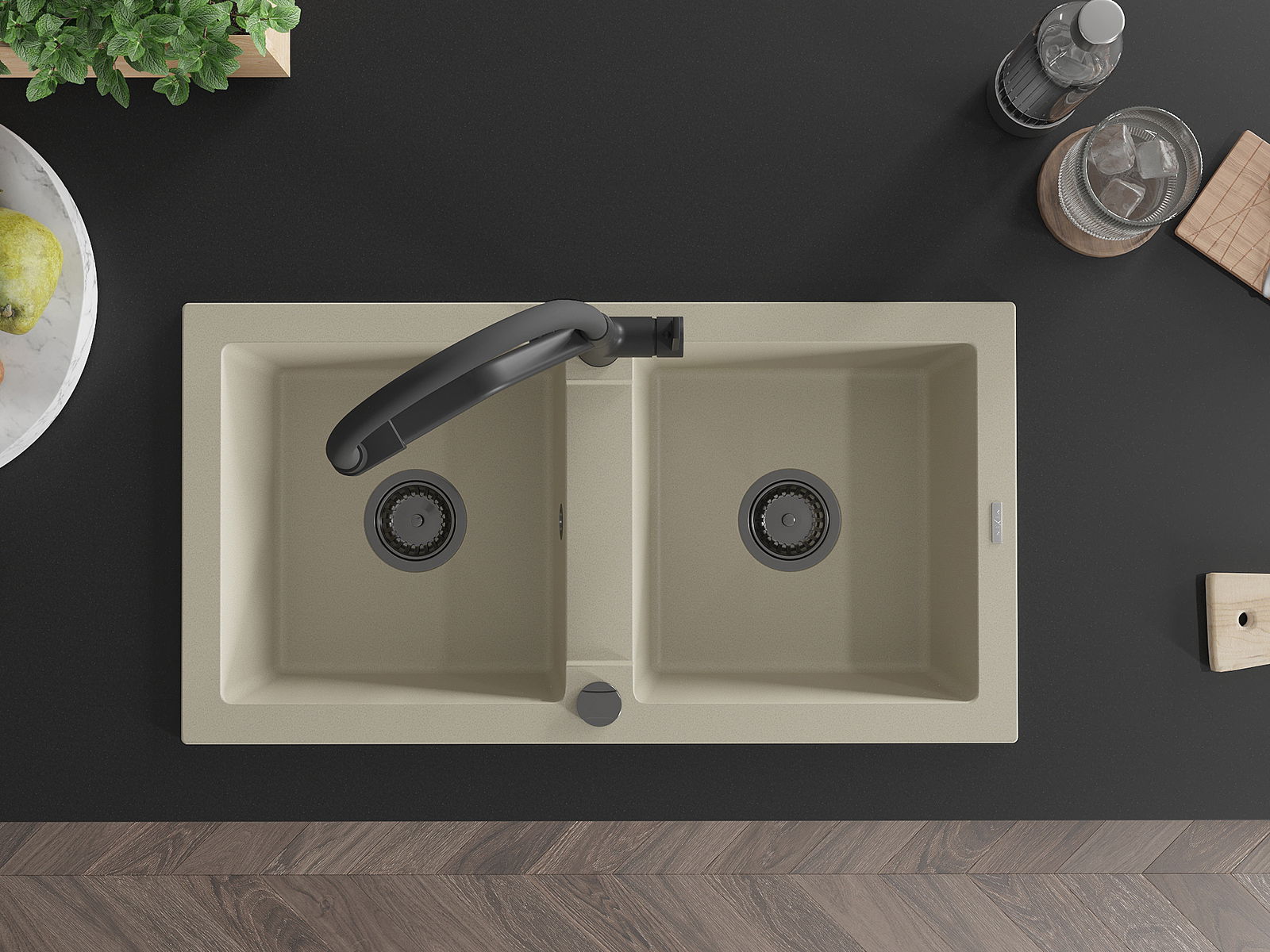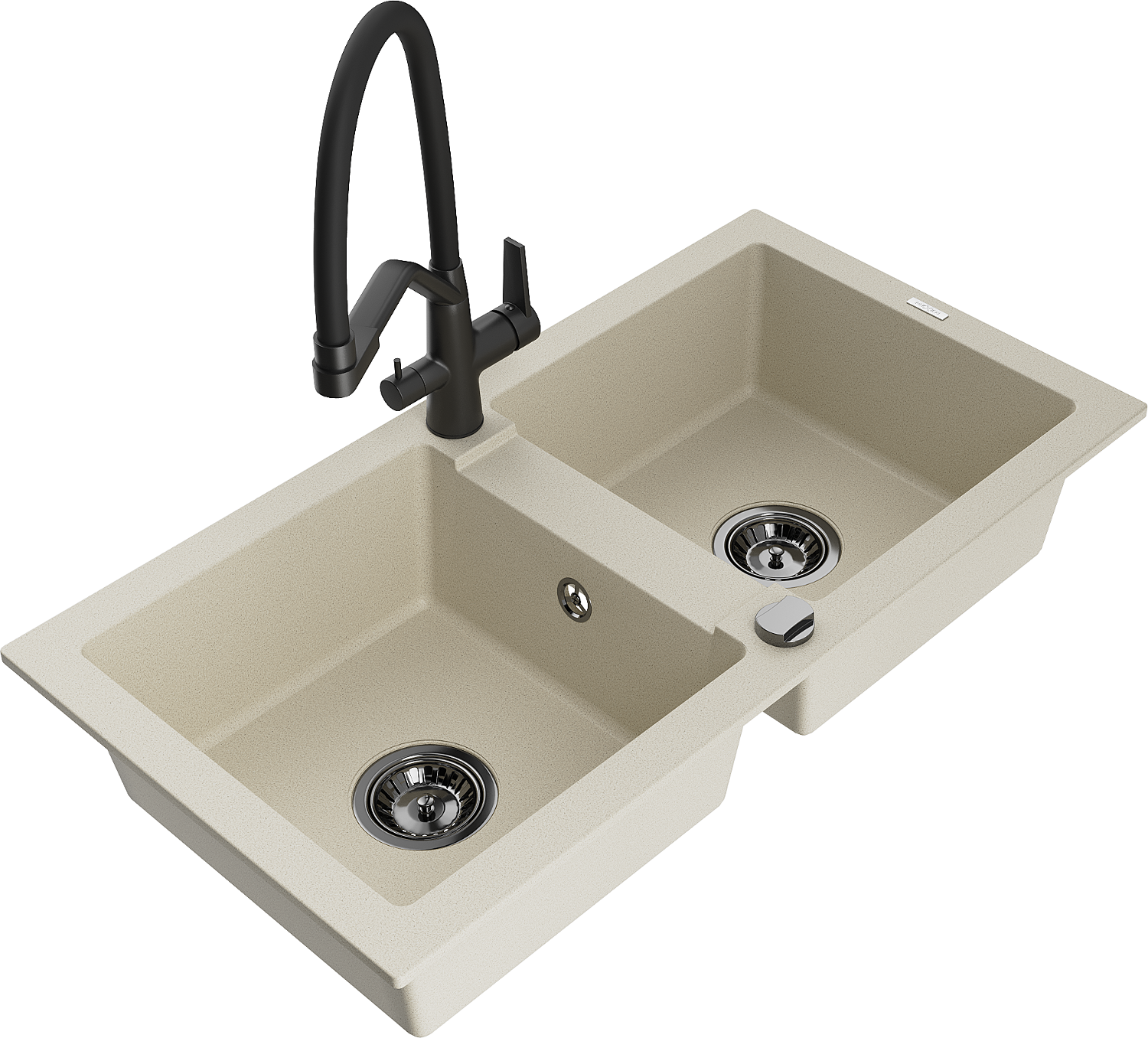 Mexen Mario Granit-Spullsteen mat 2 Schachen mat Kichenkran Duo, beige - 6504-69-671701-70-B