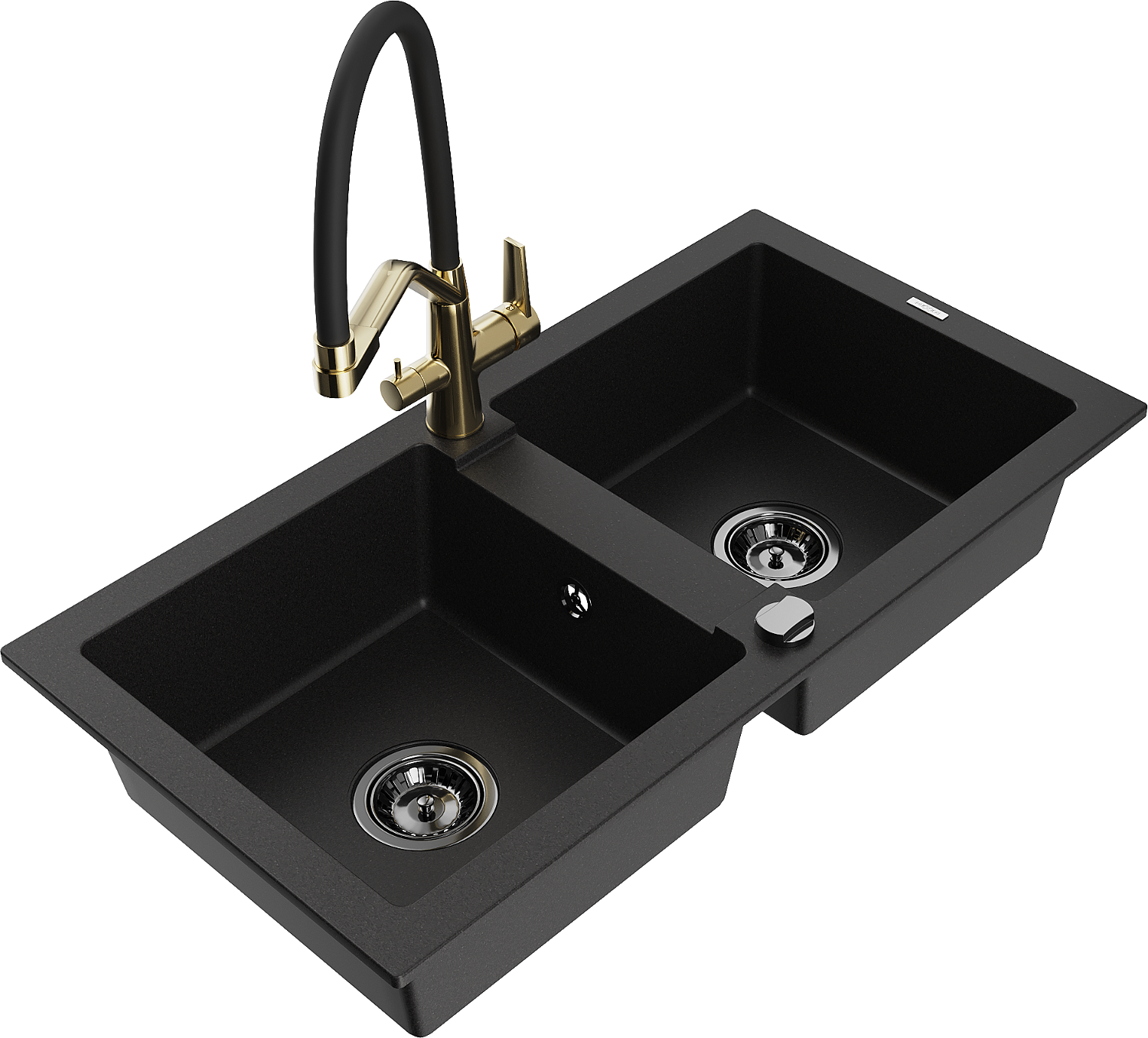 Mexen Mario zwee-kammeren Granit Spullsteen mat Kichekran Duo, schwaarz - 6504-77-671701-57-B