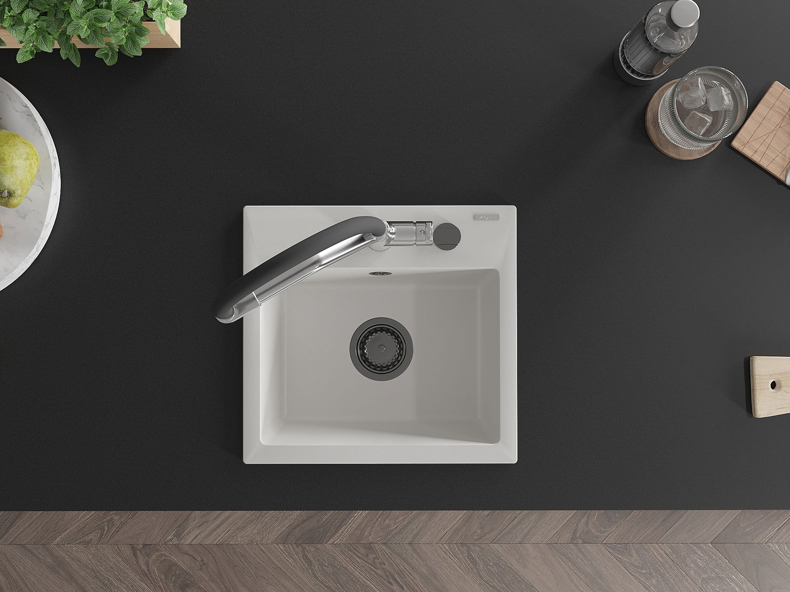 Den Ëmwäschbecken ass aus héichwäertege Granit gemaach. Et stellt eng elegant awer virun allem praktesch Ergänzung fir all Kichen duer, onofhängeg vun hirem Stil. Déi héich Qualitéit an Haltbarkeet vum Granit suergen fir méi järelaang Benotzung.