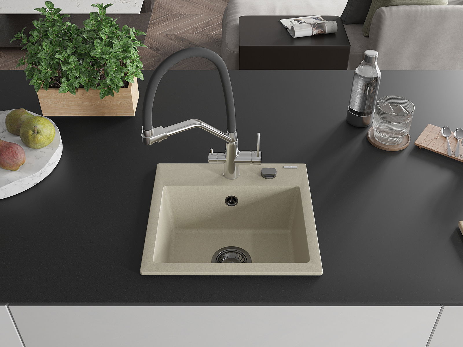 D'Uewerfläch vum Spullstee ass fleck- a verfärbungsresistent, wat se einfach ze botzen mécht an hir Faarf iwwer eng laang Zäit vum Gebrauch behalen léisst. Esthetesch an praktesch Ergänzung fir all Kichen.