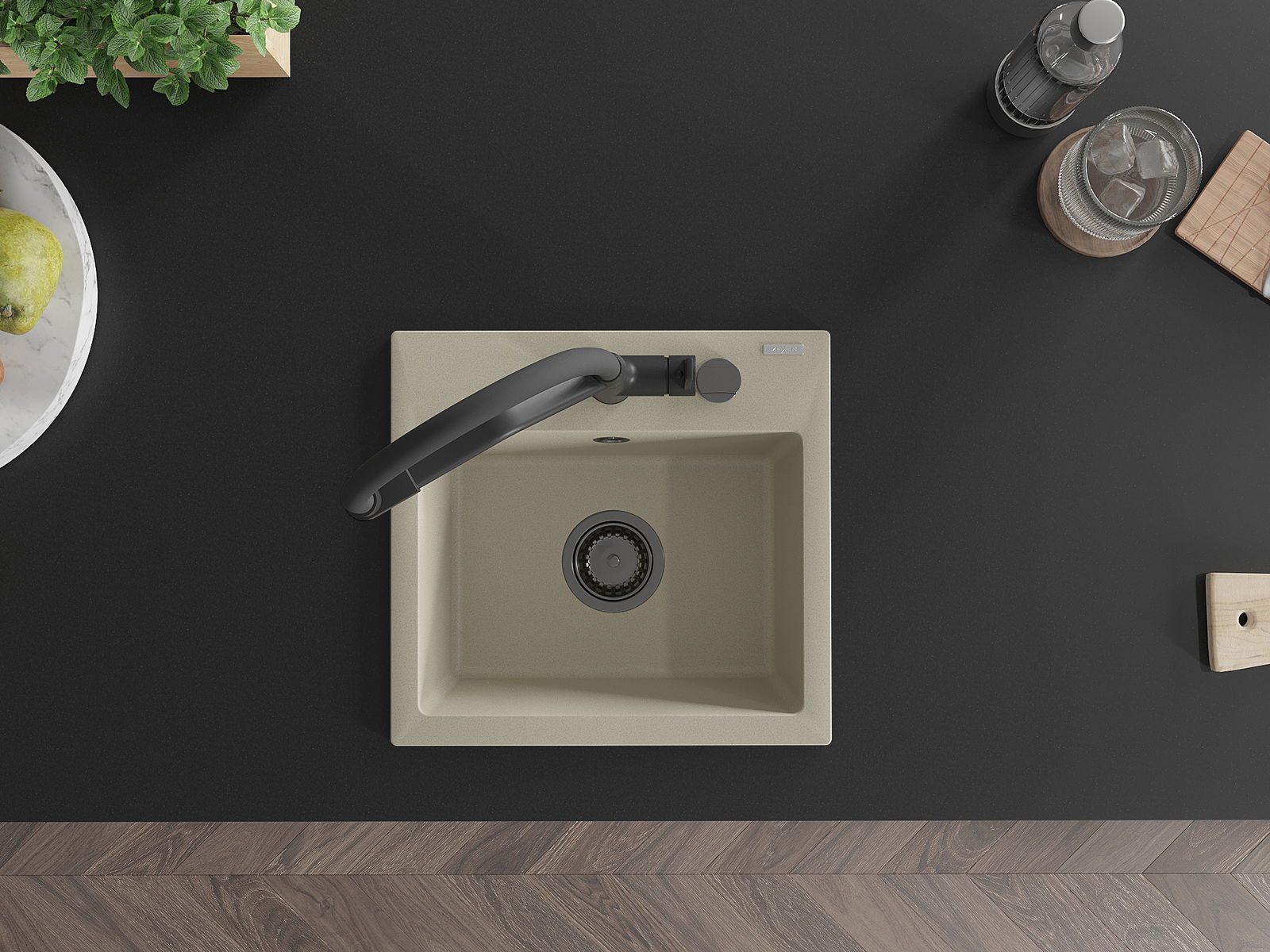 Mexen Milo 1-Kummer Granit-Spullsteen mam Kichenbatterie Duo, beige - 6505-69-671701-70-B
