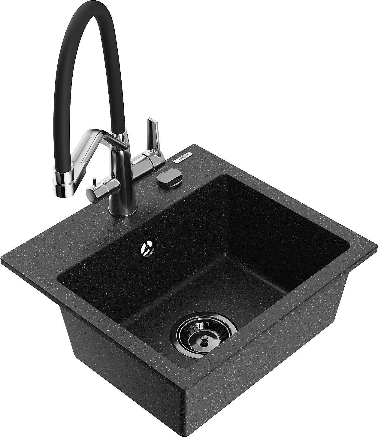 Mexen Milo granitent Spullsteen mat enger Kichenbatterie Duo, schwaarz/sëlwermetallic - 6505-73-671701-07-B