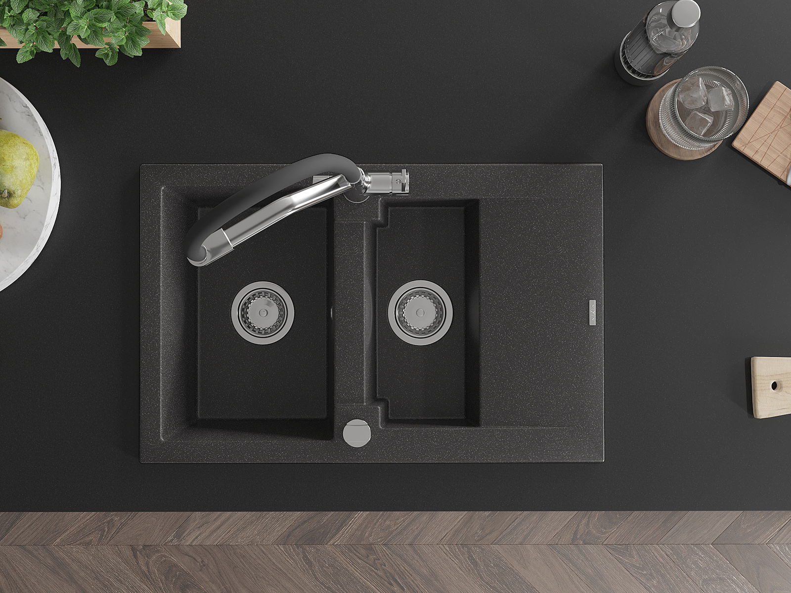 D'Uewerfläch vum Spullbecken ass ganz gutt gehärt, et ass aussergewéinlech resistent géint mechanesch Schied a Kratzer. De bestännege Materialausféierung erlaabt Iech d'gutt Ausgesinn vum Spullbecken fir vill Joeren ze genéissen.