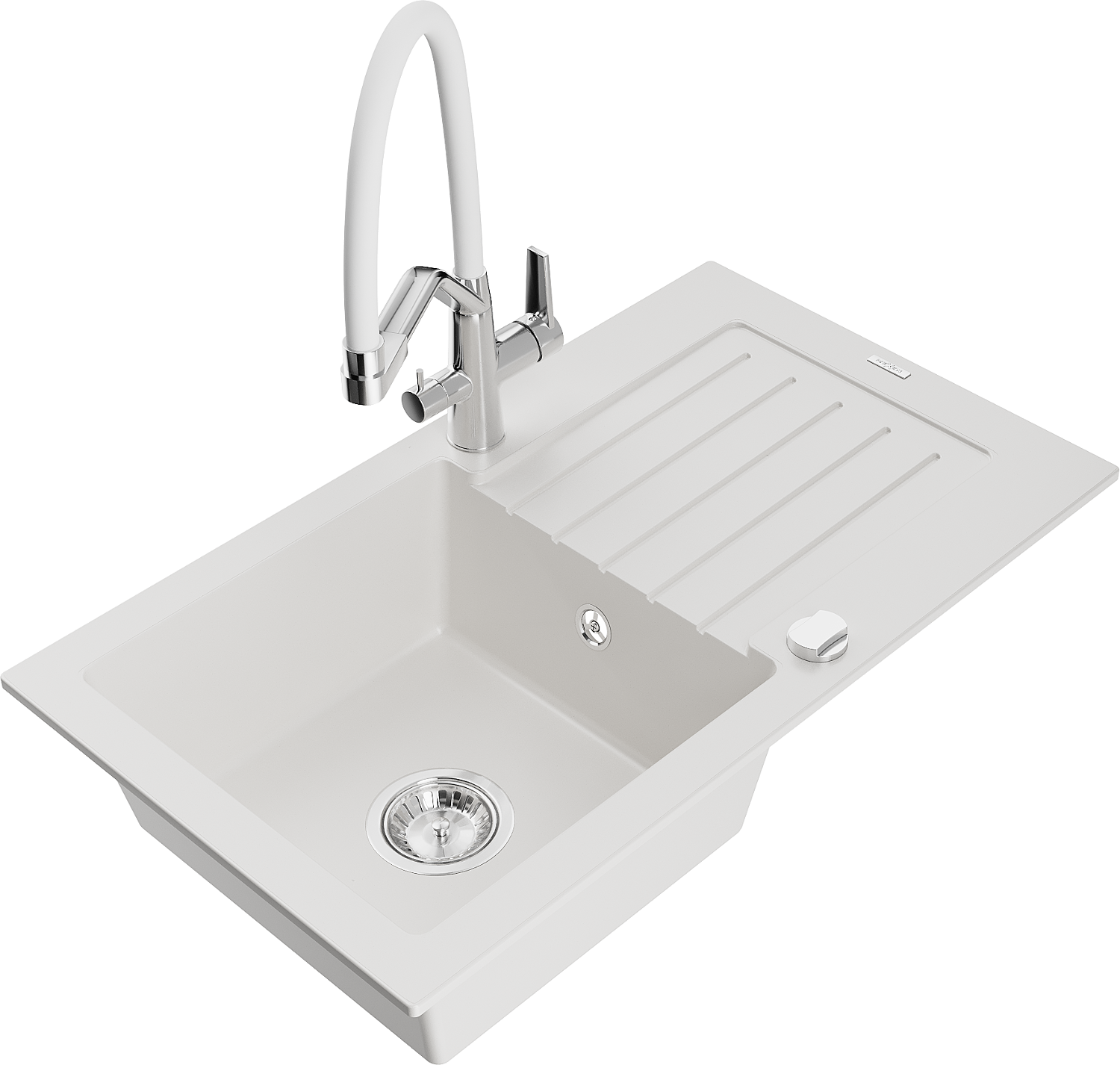 Mexen Pablo Granitspullver mat 1-Chamberspulver mat Drénage an Kichenkran Duo, wäiss - 6510-20-671701-02