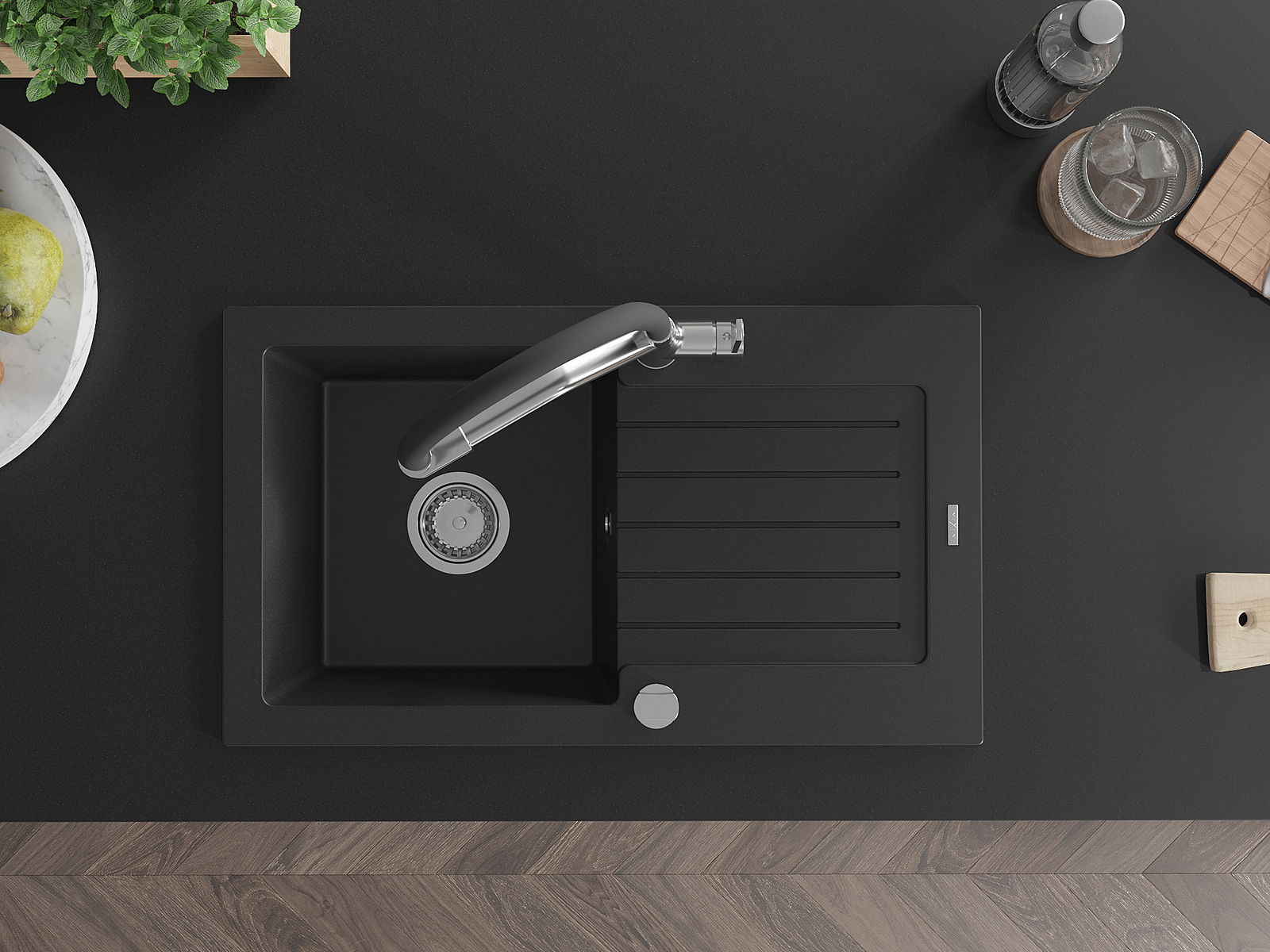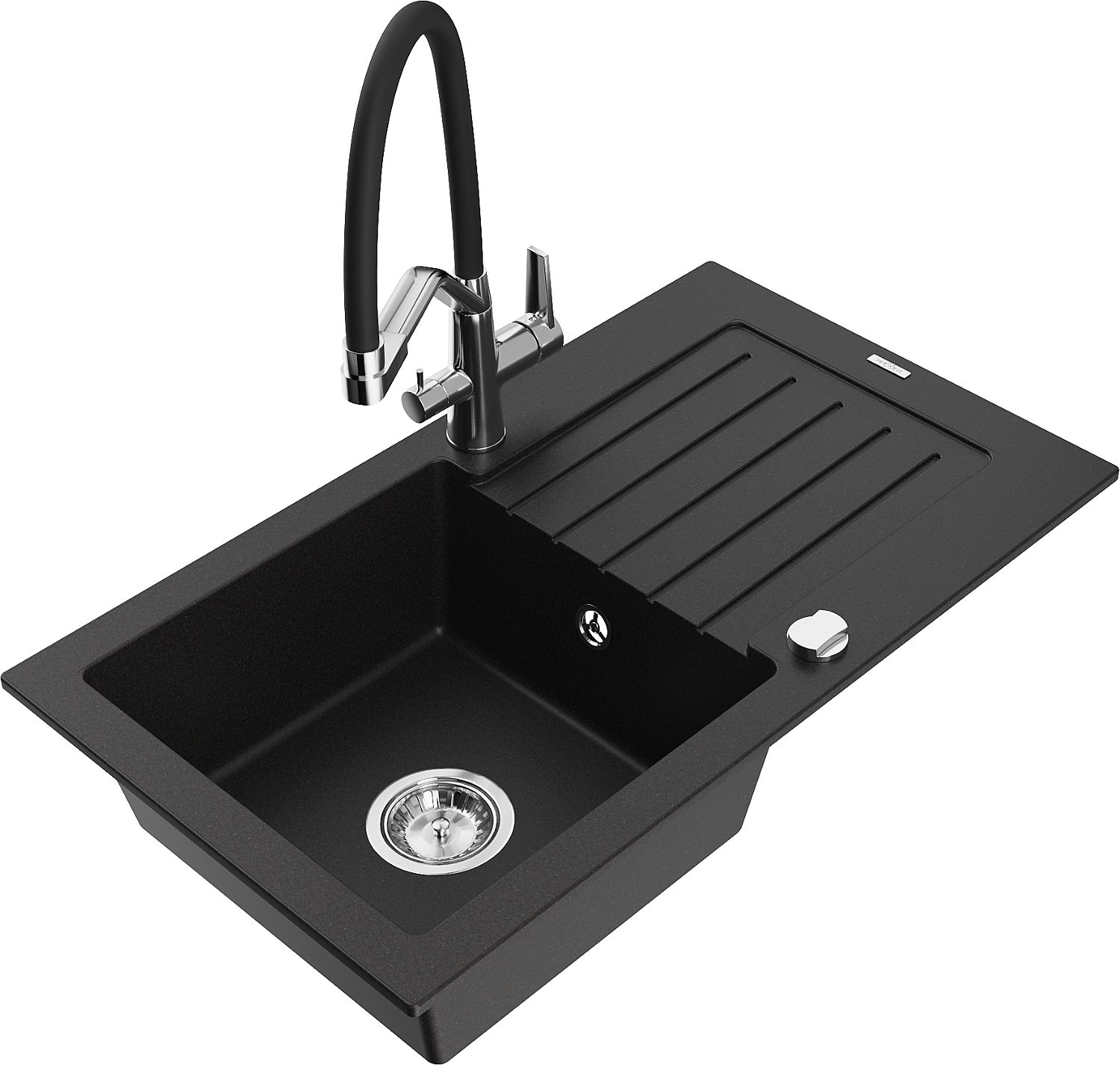 Mexen Pablo Granit-Spullsteen 1-Komor mat Drëpsasser an Kichekran Duo, schwaarz - 6510-77-671701-07