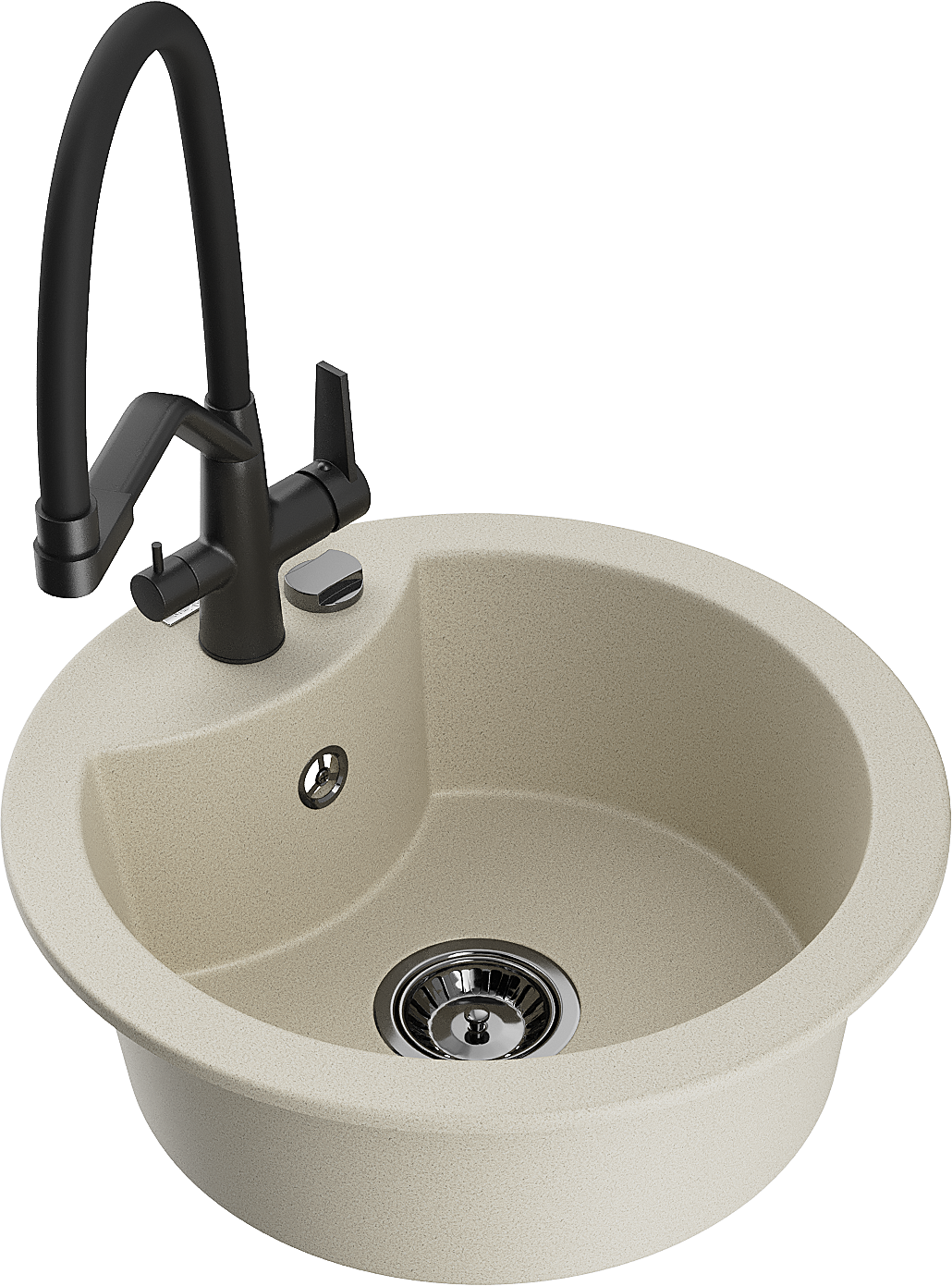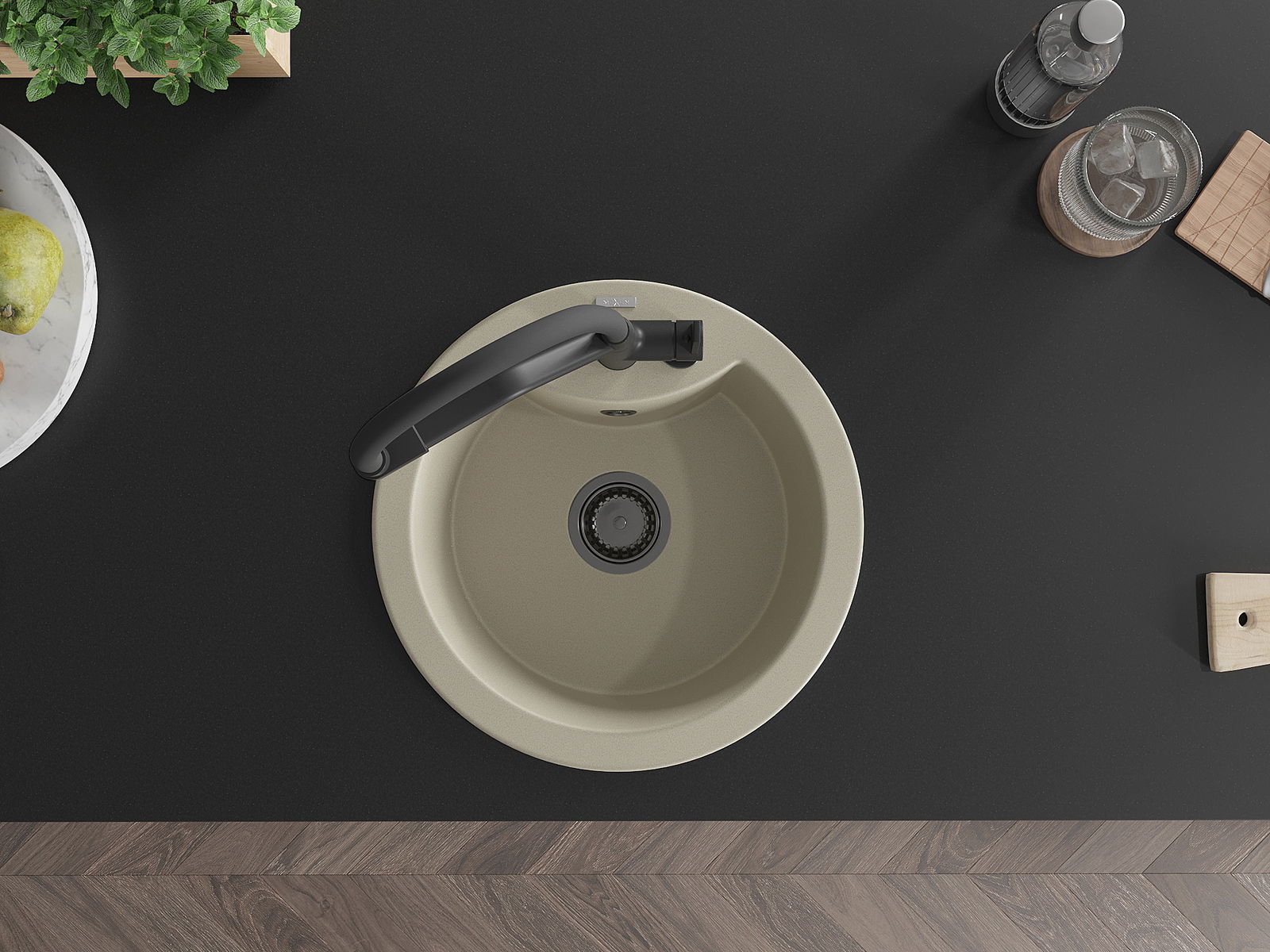 Den Ëmwäschbecken ass aus héichwäertege Granit gemaach. Et stellt eng elegant awer virun allem praktesch Ergänzung fir all Kichen duer, onofhängeg vun hirem Stil. Déi héich Qualitéit an Haltbarkeet vum Granit suergen fir méi järelaang Benotzung.