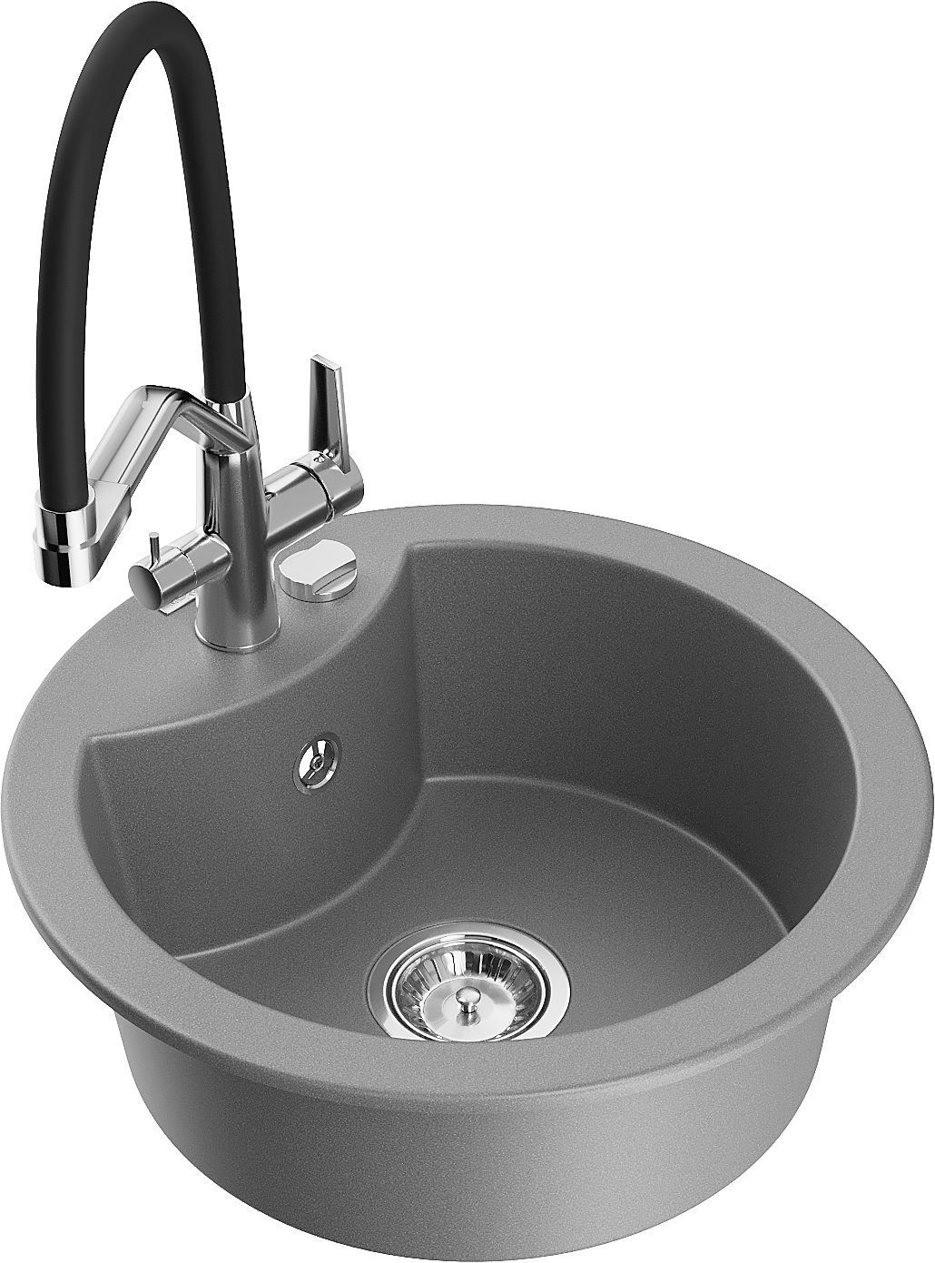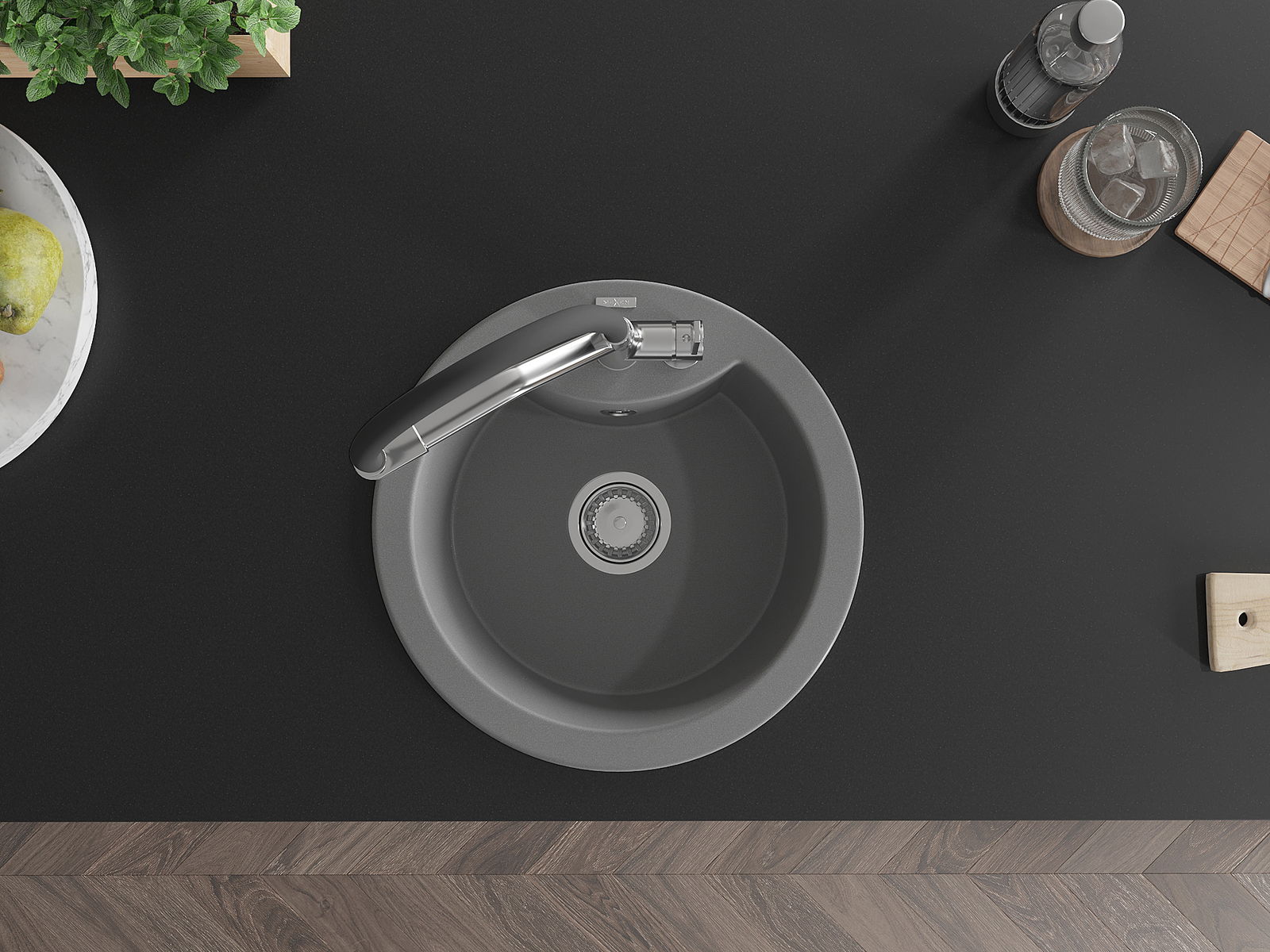 Den Ëmwäschbecken ass aus héichwäertege Granit gemaach. Et stellt eng elegant awer virun allem praktesch Ergänzung fir all Kichen duer, onofhängeg vun hirem Stil. Déi héich Qualitéit an Haltbarkeet vum Granit suergen fir méi järelaang Benotzung.