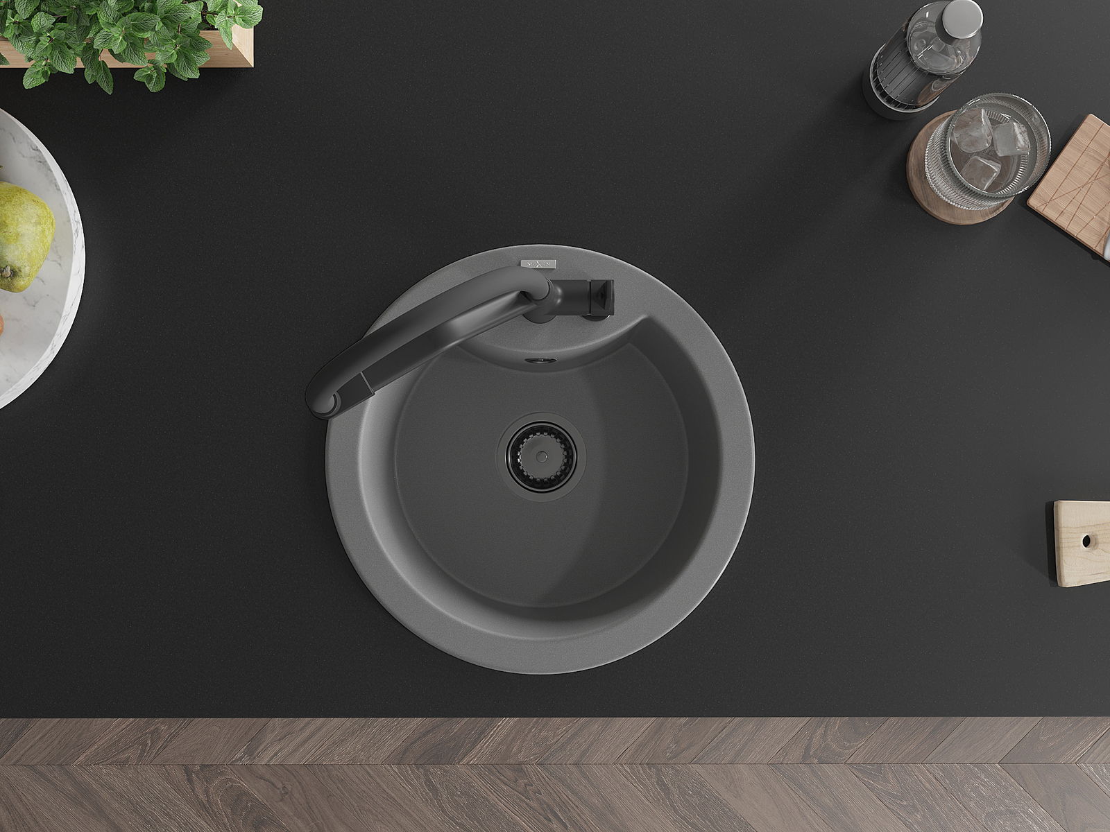 Den Ëmwäschbecken ass aus héichwäertege Granit gemaach. Et stellt eng elegant awer virun allem praktesch Ergänzung fir all Kichen duer, onofhängeg vun hirem Stil. Déi héich Qualitéit an Haltbarkeet vum Granit suergen fir méi järelaang Benotzung.