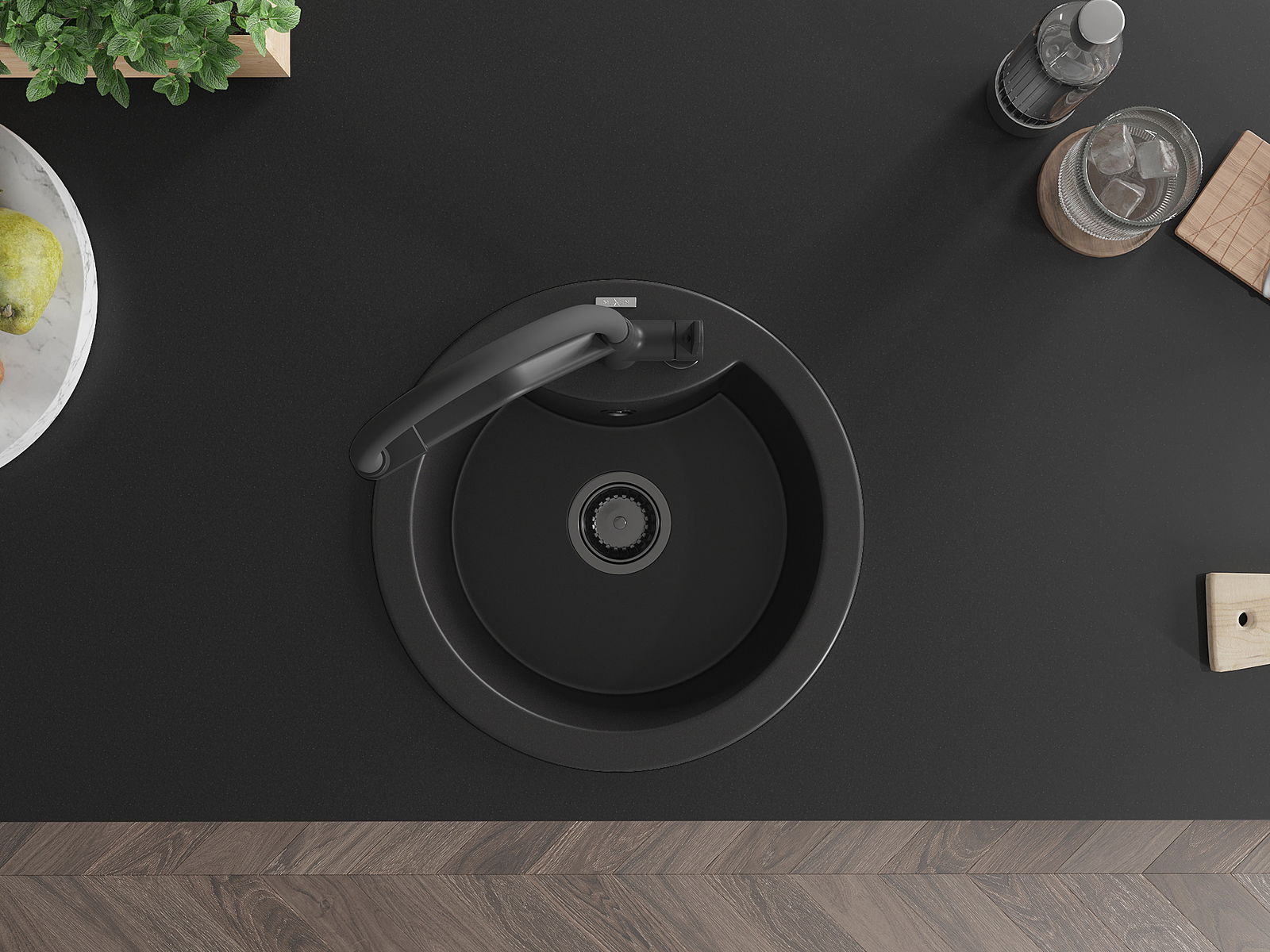 Den Ëmwäschbecken ass aus héichwäertege Granit gemaach. Et stellt eng elegant awer virun allem praktesch Ergänzung fir all Kichen duer, onofhängeg vun hirem Stil. Déi héich Qualitéit an Haltbarkeet vum Granit suergen fir méi järelaang Benotzung.