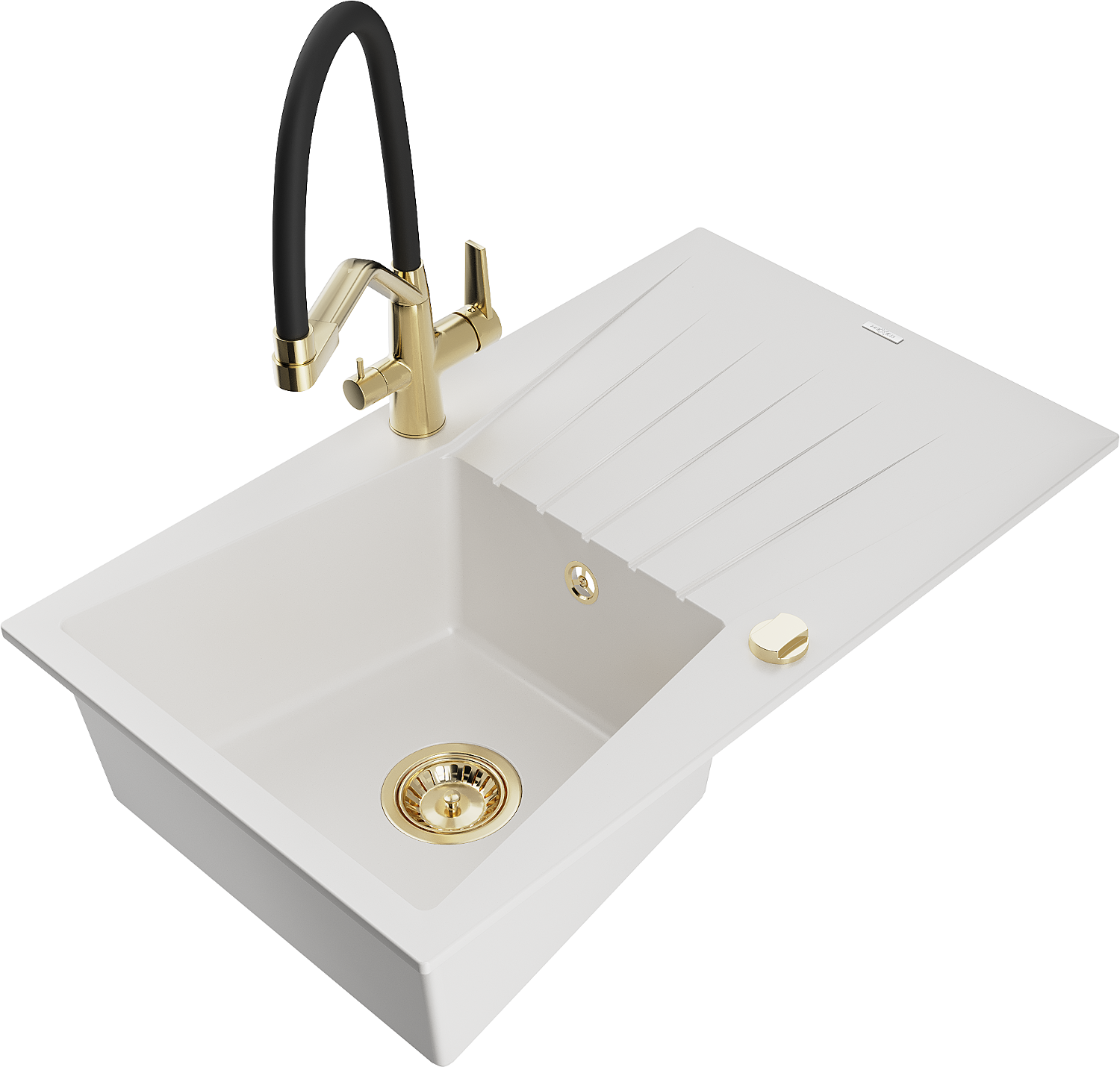 Mexen Cesar Granitspullang mat 1-Kommerz mat Offloss an Kichebatterie Duo, wäiss - 6514-20-671701-57-G
