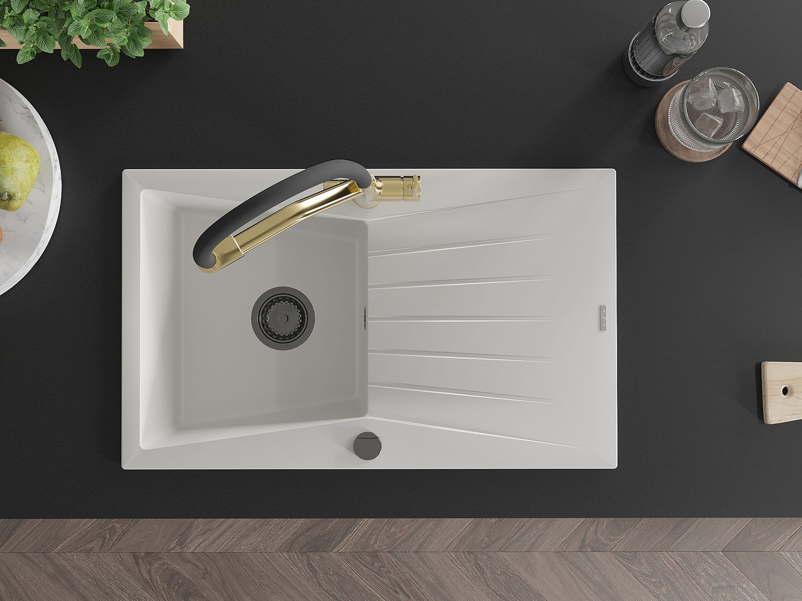 D'Uewerfläch vum Spullstee ass fleck- a verfärbungsresistent, wat se einfach ze botzen mécht an hir Faarf iwwer eng laang Zäit vum Gebrauch behalen léisst. Esthetesch an praktesch Ergänzung fir all Kichen.