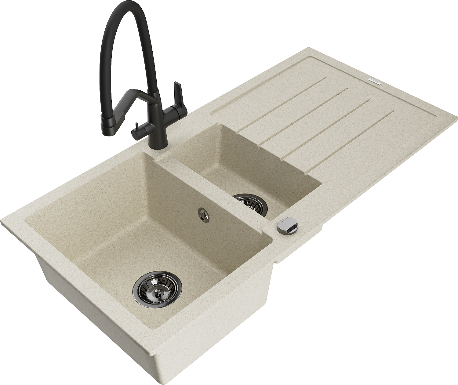 Den Spullsteen huet 2 virberäitet Lächer mat engem Duerchmiesser vun 35 mm, déi selbststänneg ausgeschloen kënne ginn. Se kënne fir d'Montage vun engem Flëssegkeetsspender benotzt ginn, deen d'Präsenz vu Plastikfläschen an der Kichen eliminéiert an hir en elegant Finish gëtt.