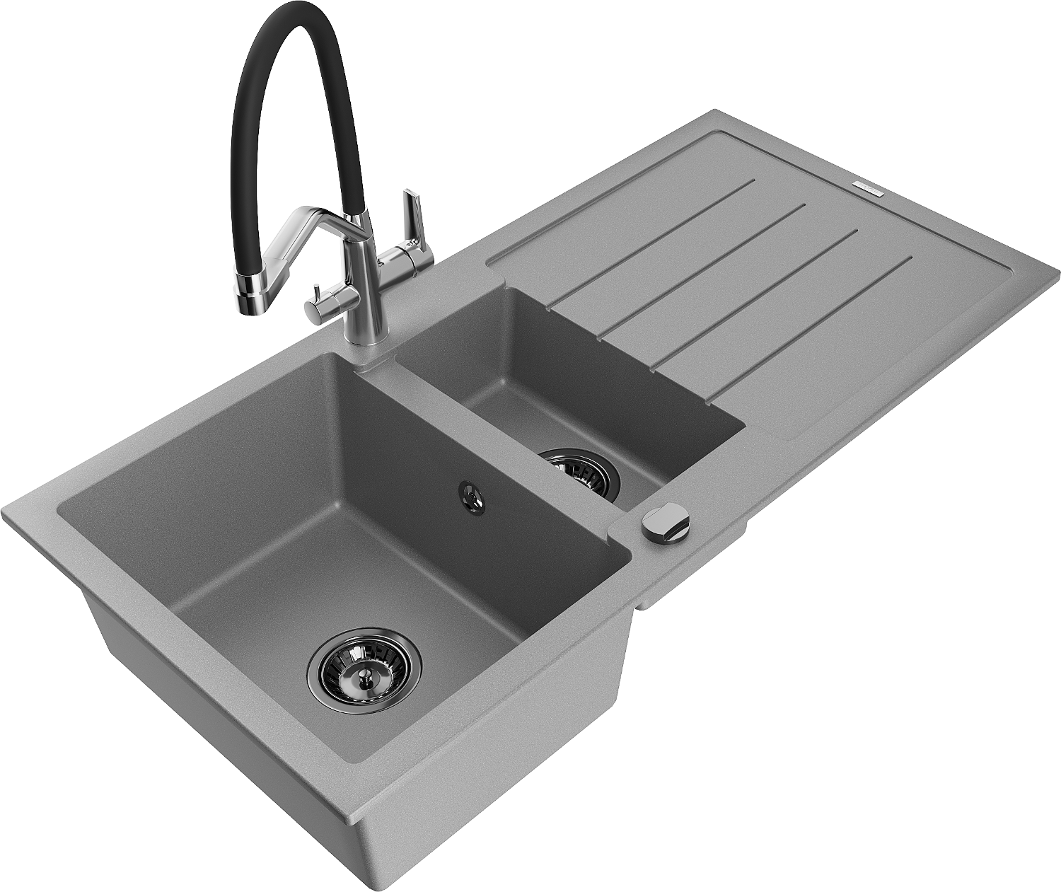 Mexen Andres Granitspullang mat 1,5-Kompartiment mat Drainage an Kichebatterie Duo, gro - 6515-71-671701-07-B