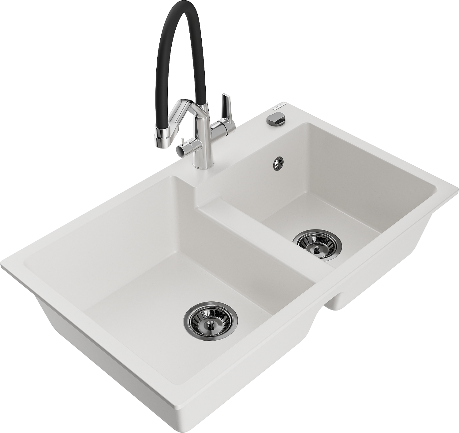 Mexen Tomas Granit-Ëvier mat 2-Komor mat Kichebatterie Duo, wäiss - 6516-20-671701-07-B