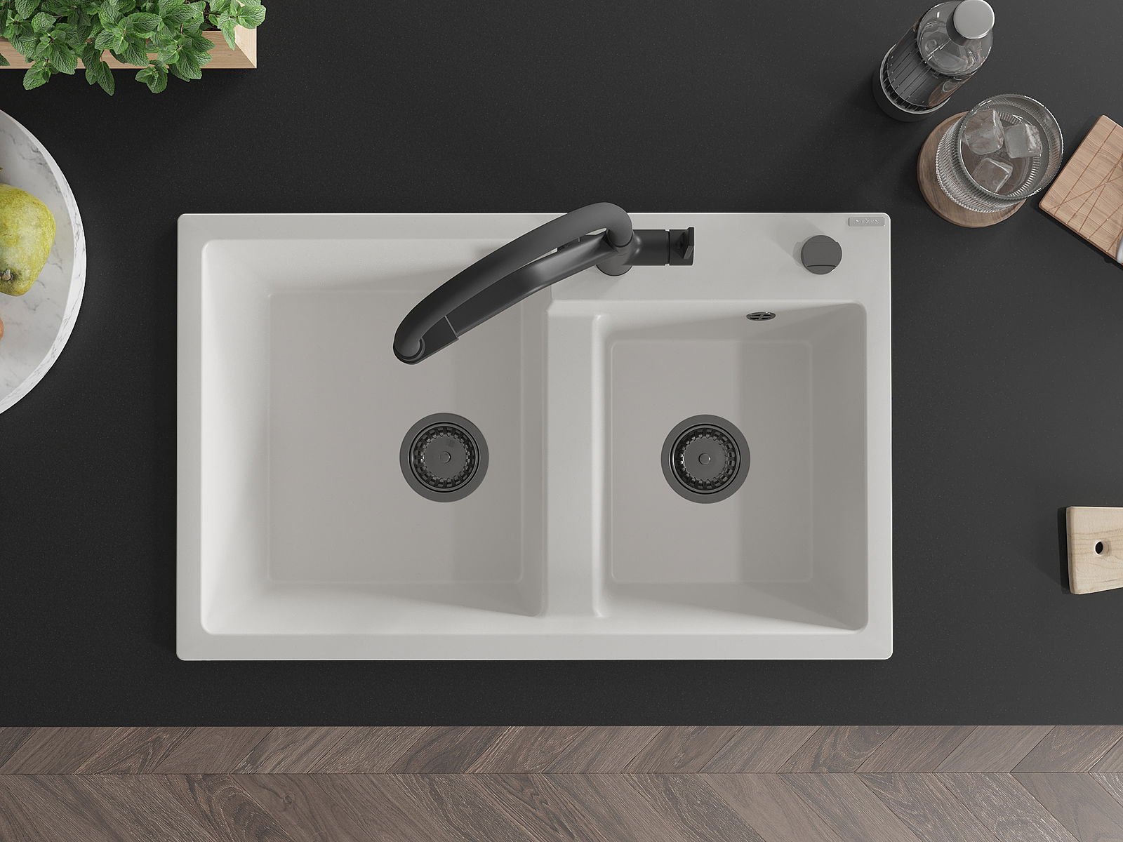 Den Ëmwäschbecken ass aus héichwäertege Granit gemaach. Et stellt eng elegant awer virun allem praktesch Ergänzung fir all Kichen duer, onofhängeg vun hirem Stil. Déi héich Qualitéit an Haltbarkeet vum Granit suergen fir méi järelaang Benotzung.