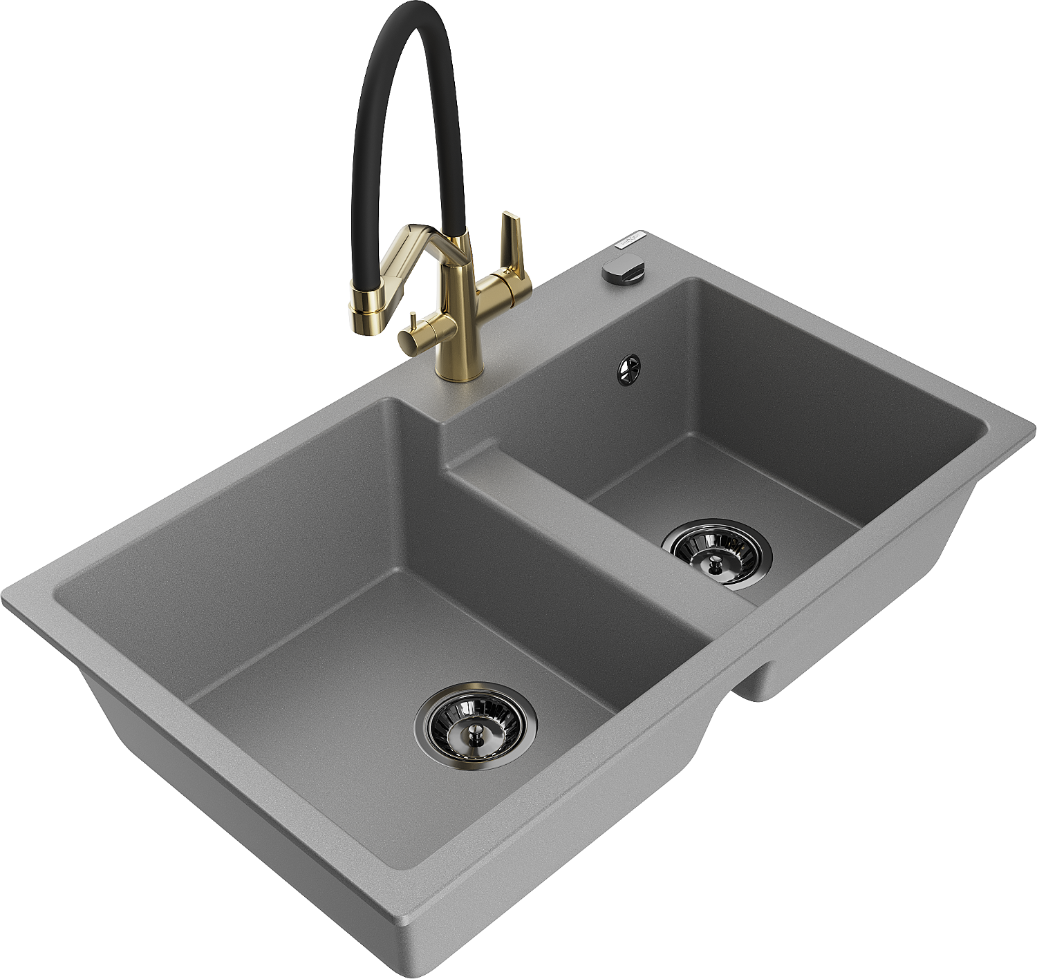 Mexen Tomas Granit-Spullsteen mat 2-Kamere mat Kichekraan Duo, gro - 6516-71-671701-57-B