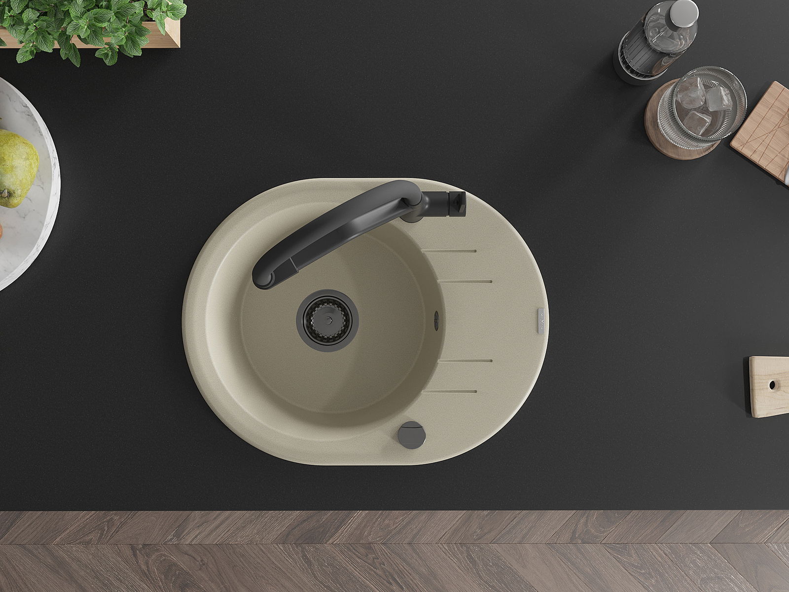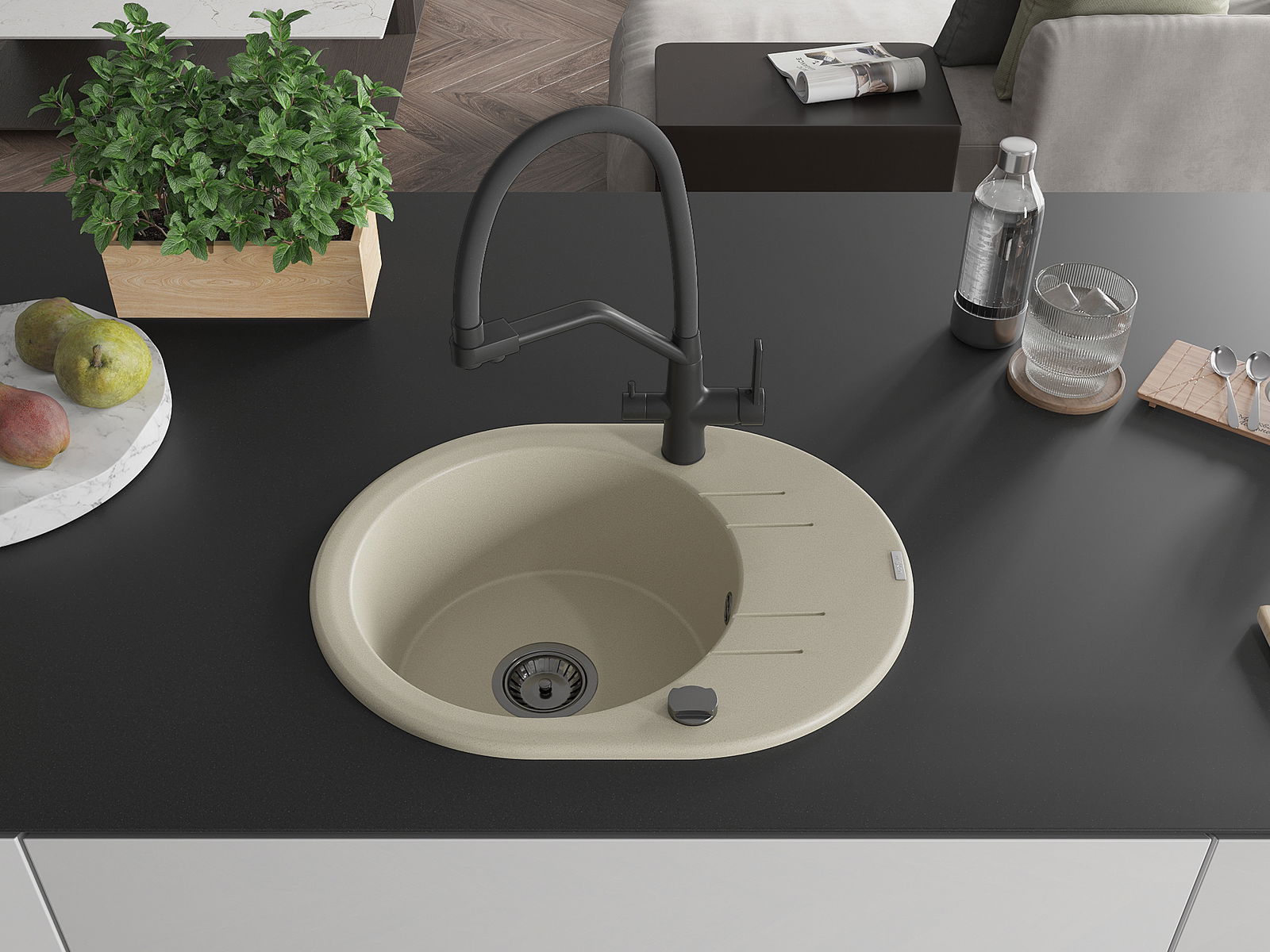 D'Uewerfläch vum Spullstee ass fleck- a verfärbungsresistent, wat se einfach ze botzen mécht an hir Faarf iwwer eng laang Zäit vum Gebrauch behalen léisst. Esthetesch an praktesch Ergänzung fir all Kichen.