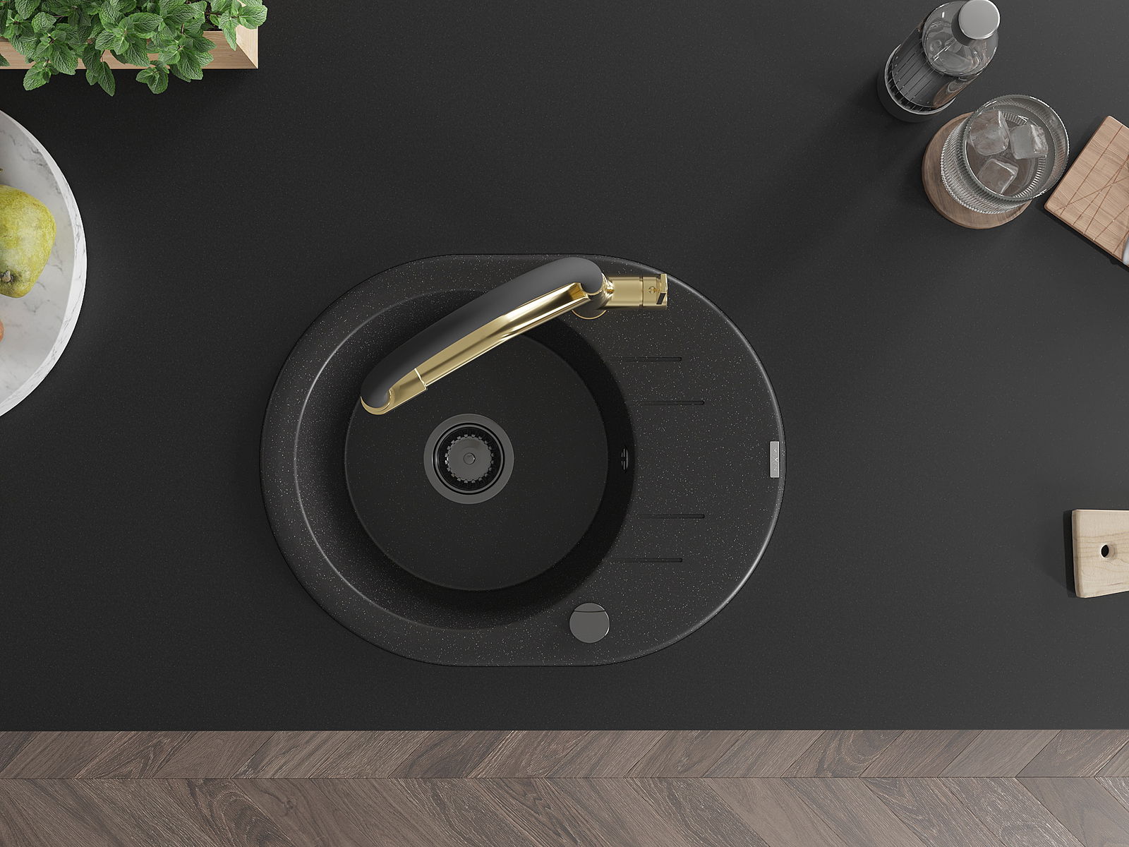 Den Ëmwäschbecken ass aus héichwäertege Granit gemaach. Et stellt eng elegant awer virun allem praktesch Ergänzung fir all Kichen duer, onofhängeg vun hirem Stil. Déi héich Qualitéit an Haltbarkeet vum Granit suergen fir méi järelaang Benotzung.