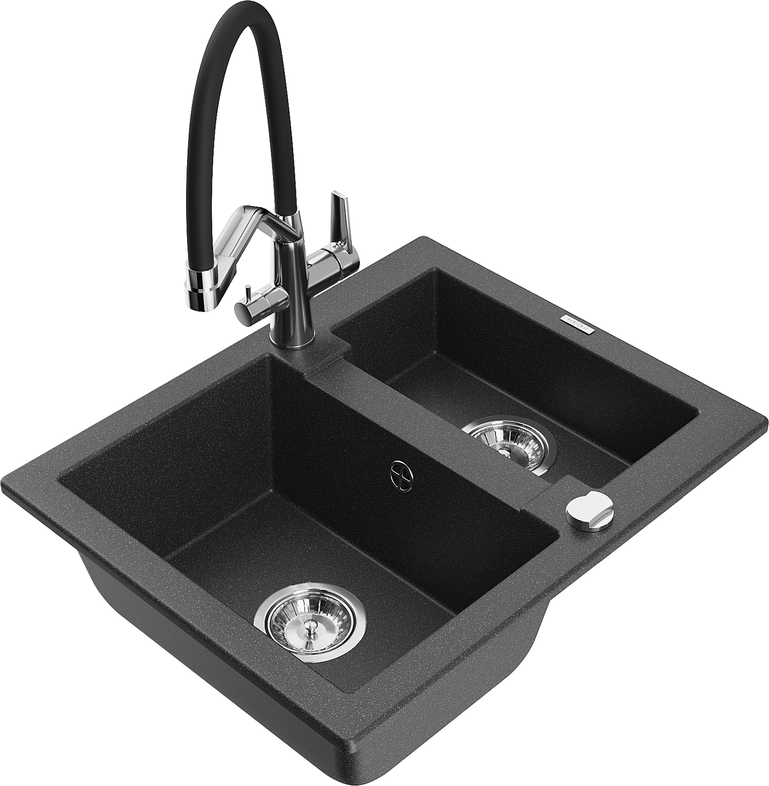 Mexen Carlos Granit-Spullsteen 1,5-Kompartiment mat Kichekran Duo, schwaarz mat Sprenkelen - 6518-76-671701-07