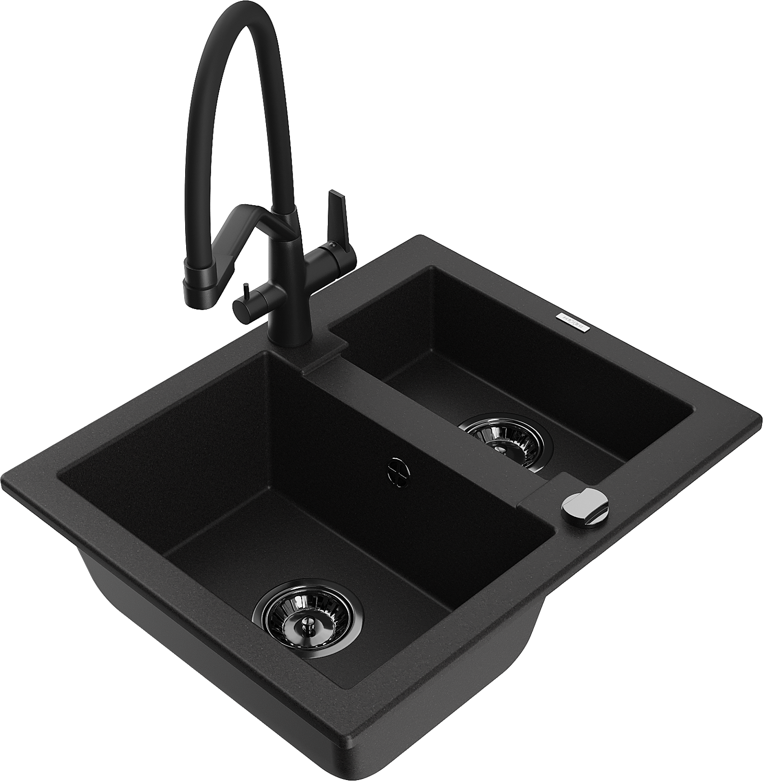 Mexen Carlos Granitspullwasch mat 1,5 Schoss mat Kichekraan Duo, schwaarz - 6518-77-671701-70-B