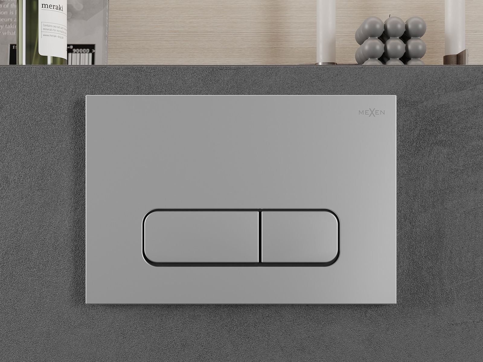 D'Spullung gëtt op déi traditionell Manéier ausgeléist - en Drécken op de Knäppchen aktivéiert eng Hebel, déi e Ventil opmécht an de Waasser spullt. Et ass eng einfach an intuitiv Léisung, déi dacks an de Buedzëmmer fonnt gëtt.