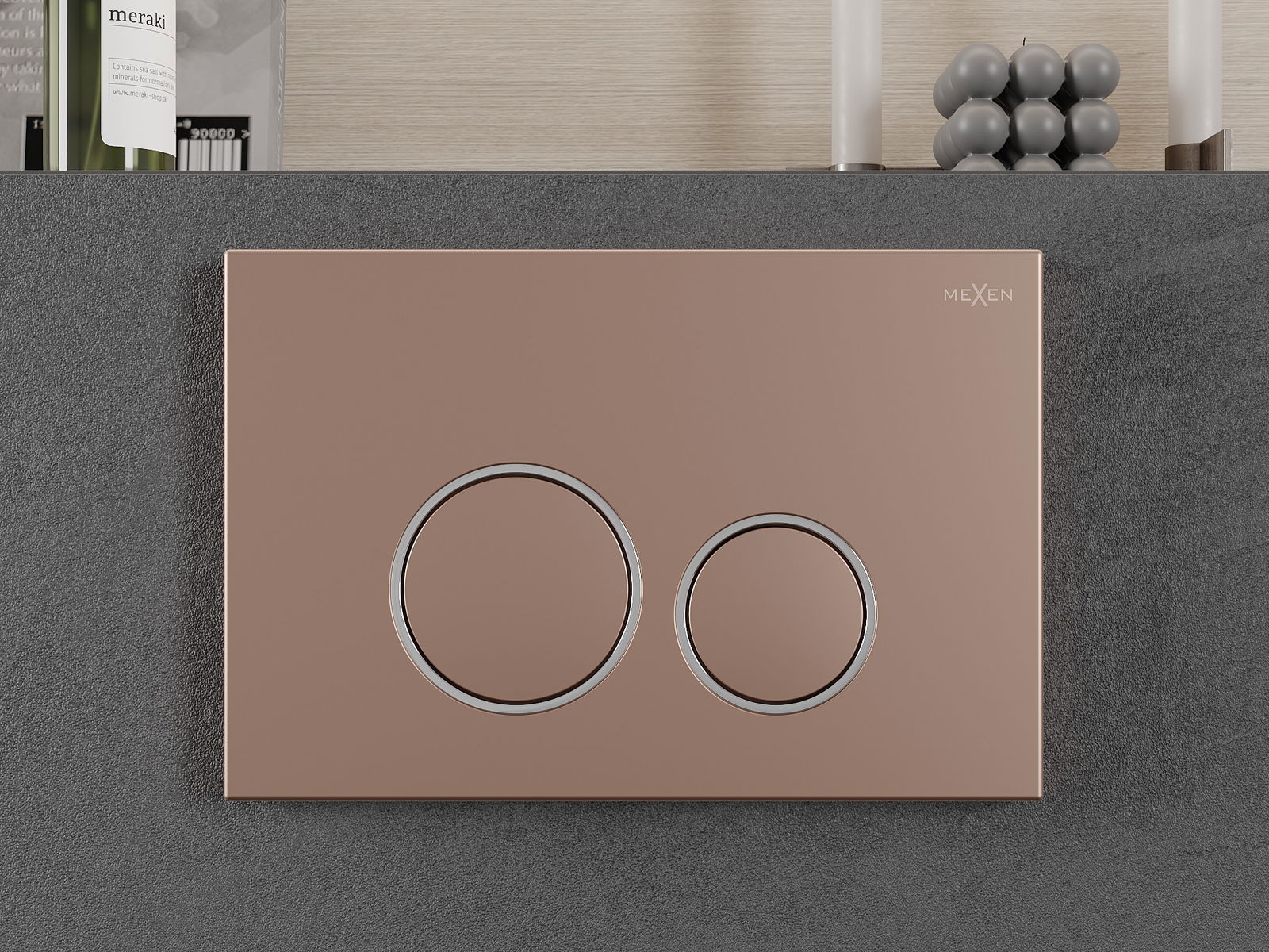D'Spullung gëtt op déi traditionell Manéier ausgeléist - en Drécken op de Knäppchen aktivéiert eng Hebel, déi e Ventil opmécht an de Waasser spullt. Et ass eng einfach an intuitiv Léisung, déi dacks an de Buedzëmmer fonnt gëtt.