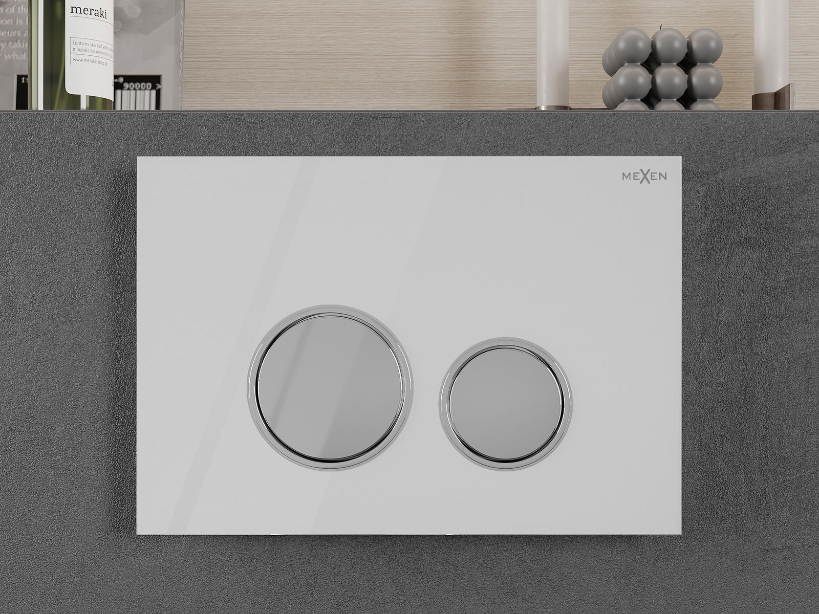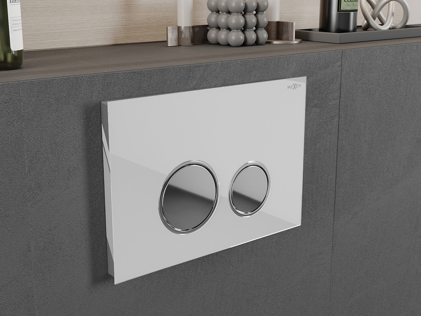 D'Spullung gëtt op déi traditionell Manéier ausgeléist - en Drécken op de Knäppchen aktivéiert eng Hebel, déi e Ventil opmécht an de Waasser spullt. Et ass eng einfach an intuitiv Léisung, déi dacks an de Buedzëmmer fonnt gëtt.