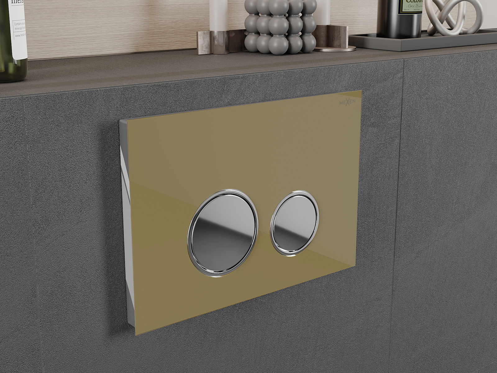 D'Spullung gëtt op déi traditionell Manéier ausgeléist - en Drécken op de Knäppchen aktivéiert eng Hebel, déi e Ventil opmécht an de Waasser spullt. Et ass eng einfach an intuitiv Léisung, déi dacks an de Buedzëmmer fonnt gëtt.
