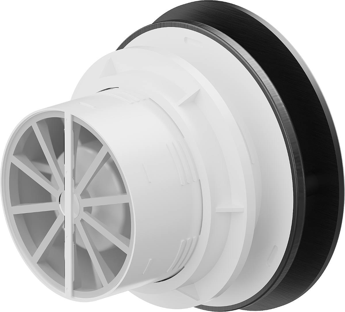 - Réckschlagklapp déi verhënnert datt Loft aus de Ventilatiounskanäl zréck an de Raum kënnt