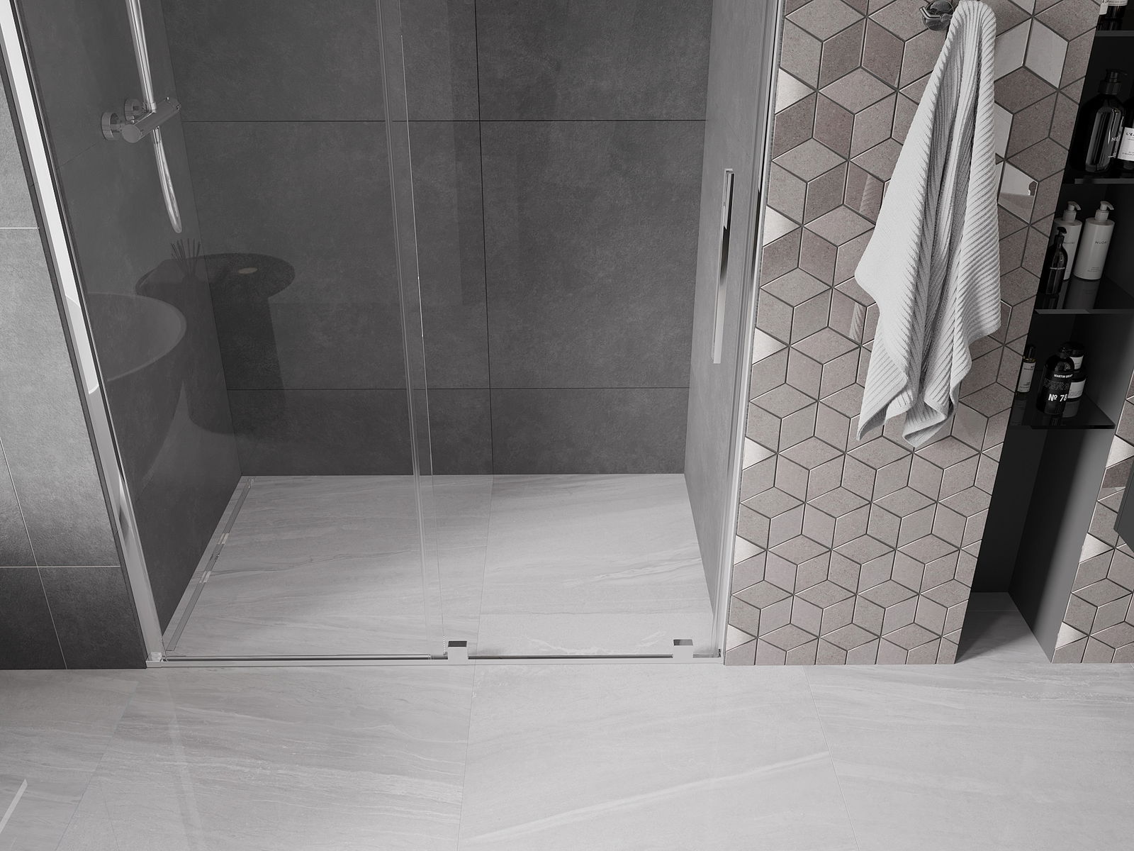 Dank dem universelle Montagesystem kënnen d'Duschdieren op der lénker oder op der rietser Säit montéiert ginn, ofhängeg vun de Besoinen. Duerch dëst kënns du de Buedzëmmer-Dusch mat Liichtegkeet un de Raum upassen.