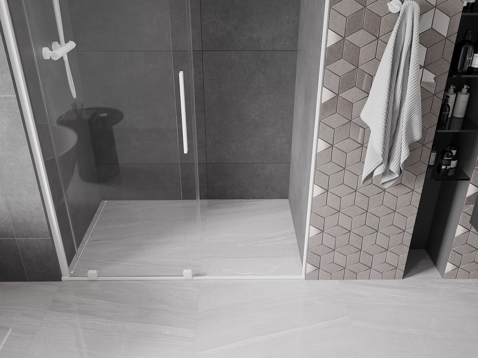 Mexen Velar schiebbar Duschdier 130 cm, transparent, wäiss - 871-130-000-01-20