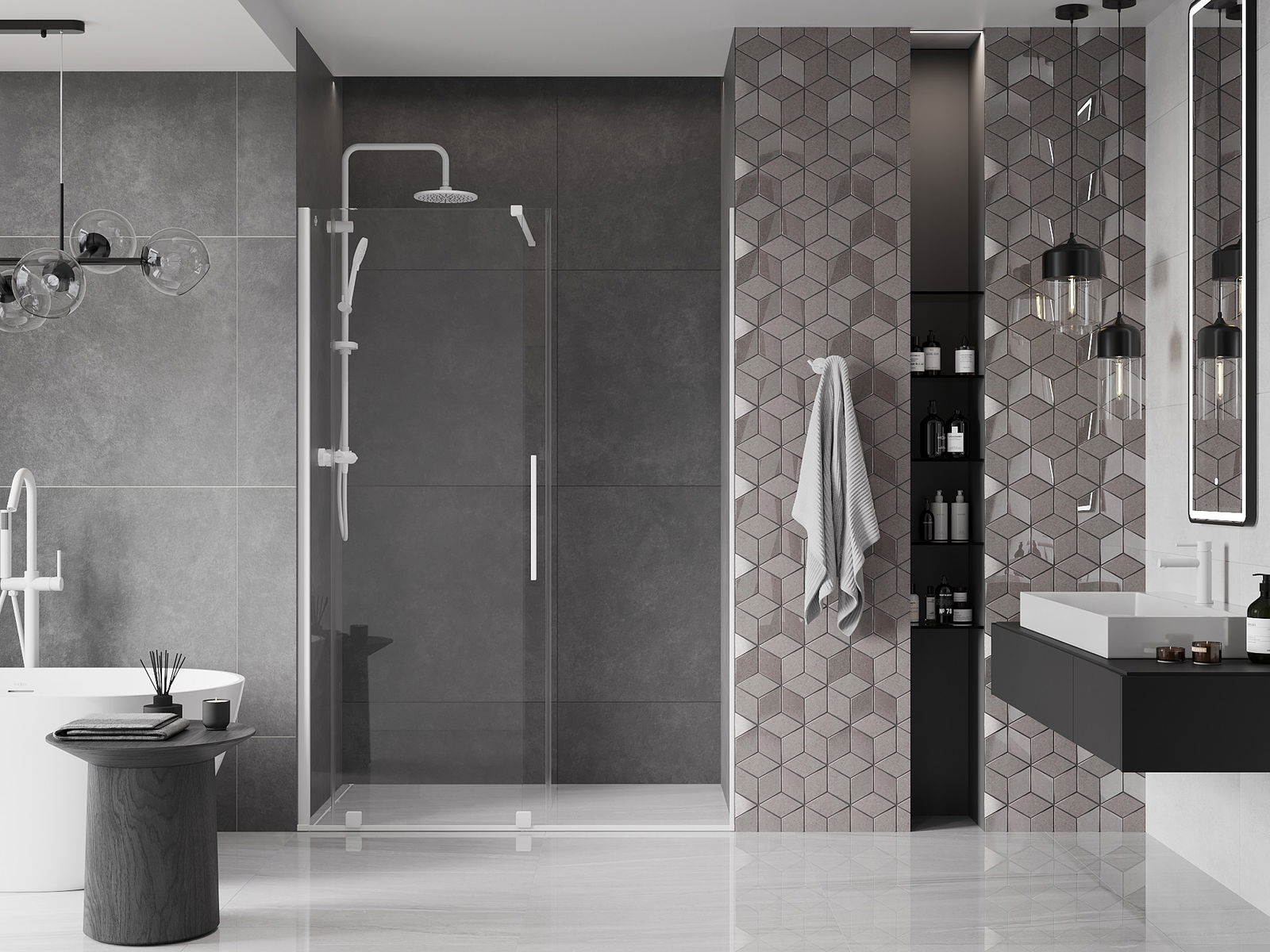 En handlecht a komfortabele Grëff ass aus Edelstol gemaach. E modernen Design an enger Ofschloss der Faarf vun de Profiler ugepasst, gëtt et en moderne a stilvolle Look, deen d'Aesthetik vun all Buedzëmmer ervirhieft.