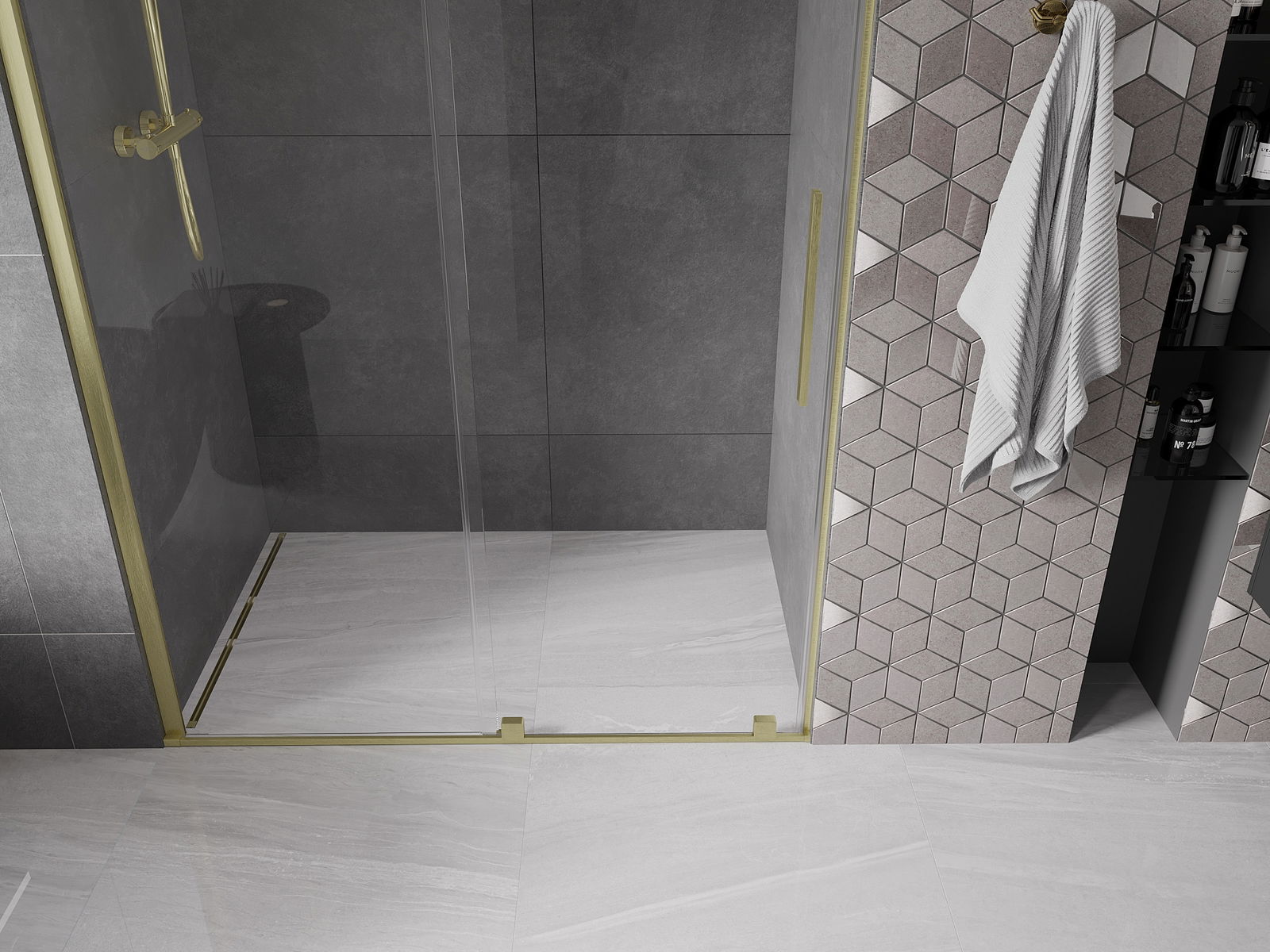 En handlecht a komfortabele Grëff ass aus Edelstol gemaach. E modernen Design an enger Ofschloss der Faarf vun de Profiler ugepasst, gëtt et en moderne a stilvolle Look, deen d'Aesthetik vun all Buedzëmmer ervirhieft.