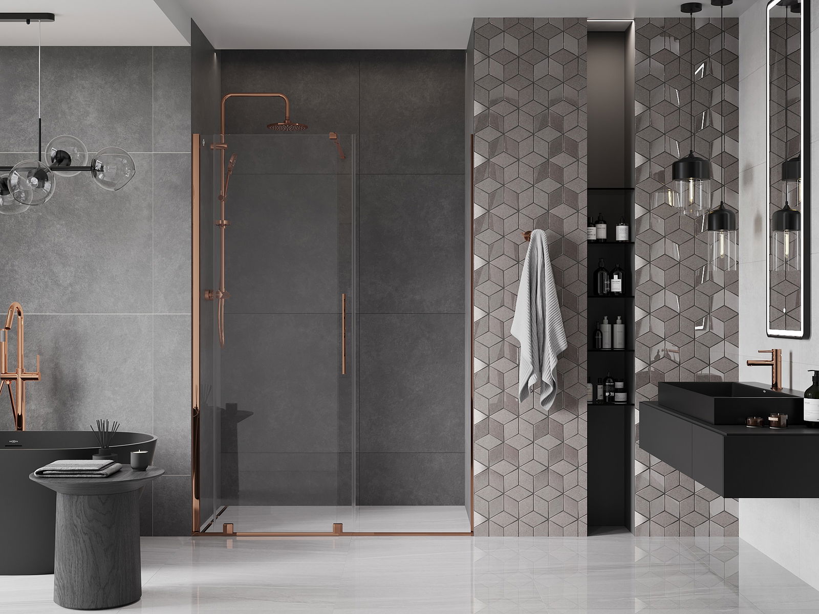 En handlecht a komfortabele Grëff ass aus Edelstol gemaach. E modernen Design an enger Ofschloss der Faarf vun de Profiler ugepasst, gëtt et en moderne a stilvolle Look, deen d'Aesthetik vun all Buedzëmmer ervirhieft.