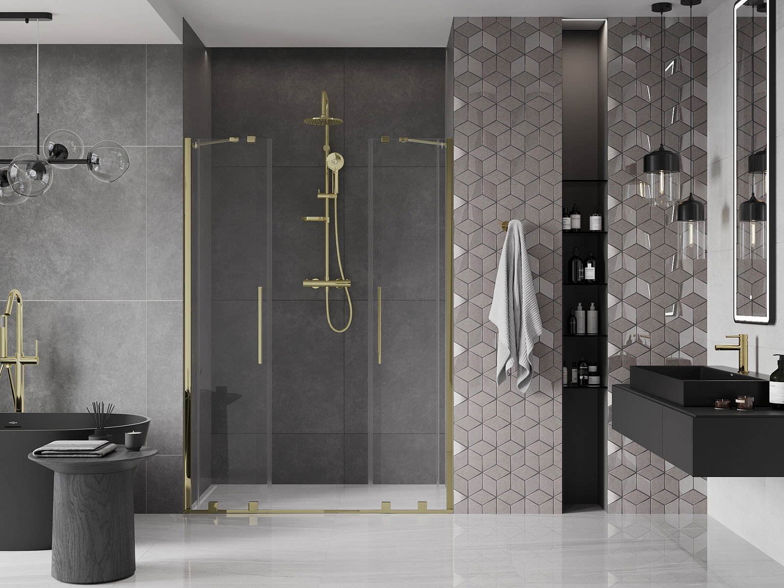 En handlecht a komfortabele Grëff ass aus Edelstol gemaach. E modernen Design an enger Ofschloss der Faarf vun de Profiler ugepasst, gëtt et en moderne a stilvolle Look, deen d'Aesthetik vun all Buedzëmmer ervirhieft.