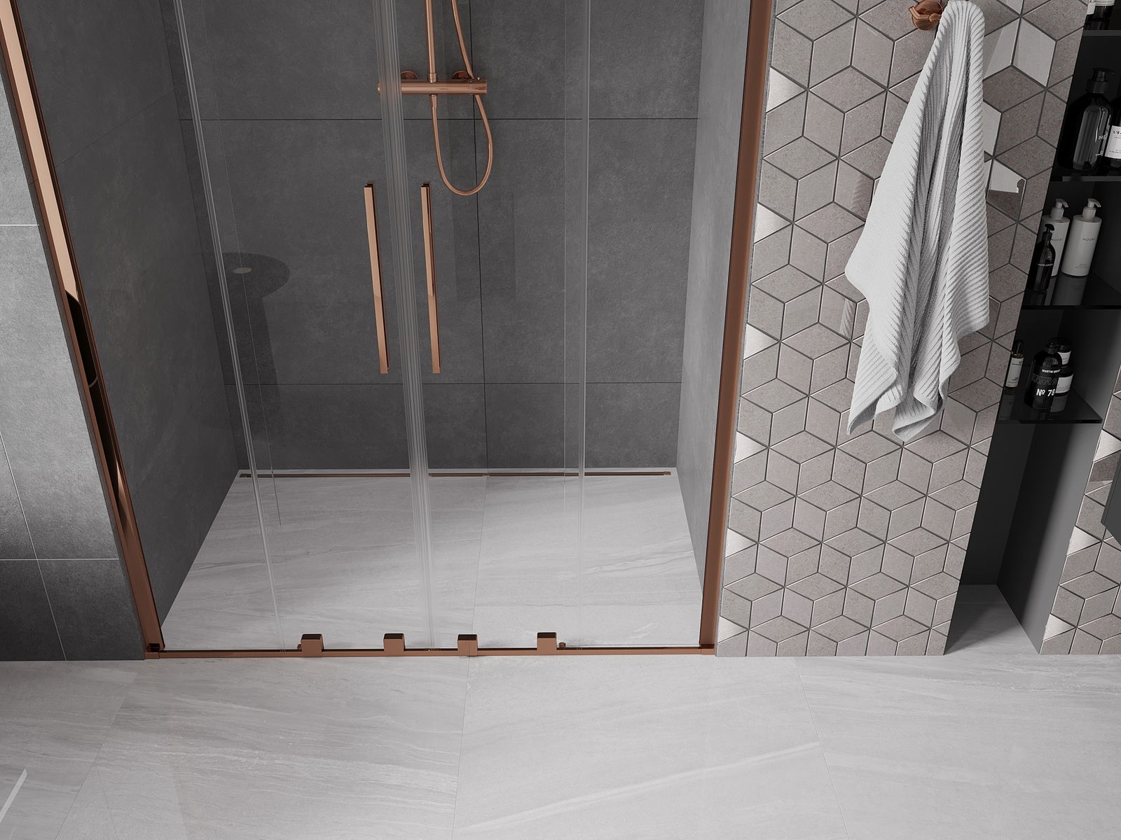 En handlecht a komfortabele Grëff ass aus Edelstol gemaach. E modernen Design an enger Ofschloss der Faarf vun de Profiler ugepasst, gëtt et en moderne a stilvolle Look, deen d'Aesthetik vun all Buedzëmmer ervirhieft.
