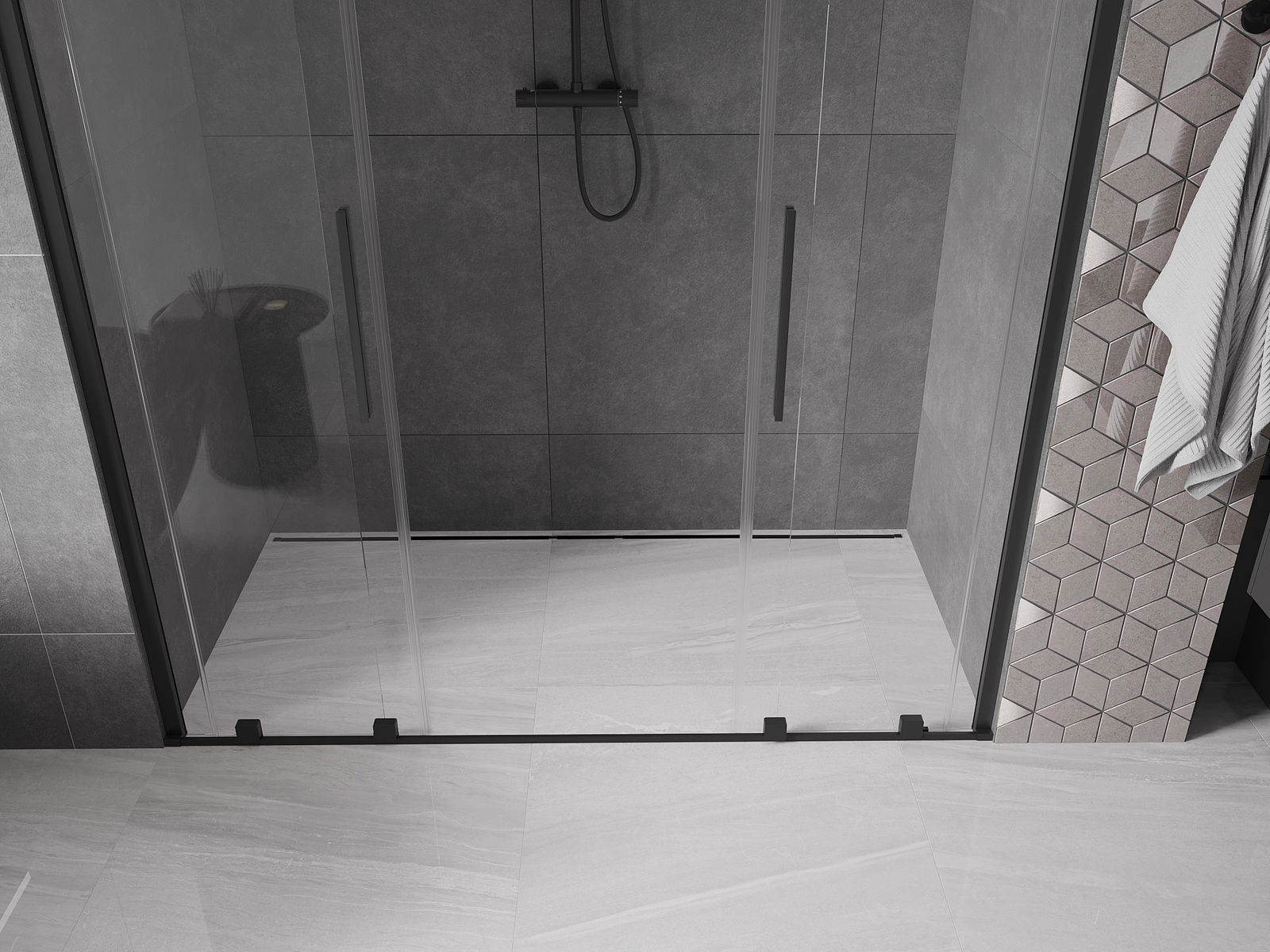 Mexen Velar Duo Schuifduschendier 180 cm, transparent, schwaarz - 871-180-000-02-70