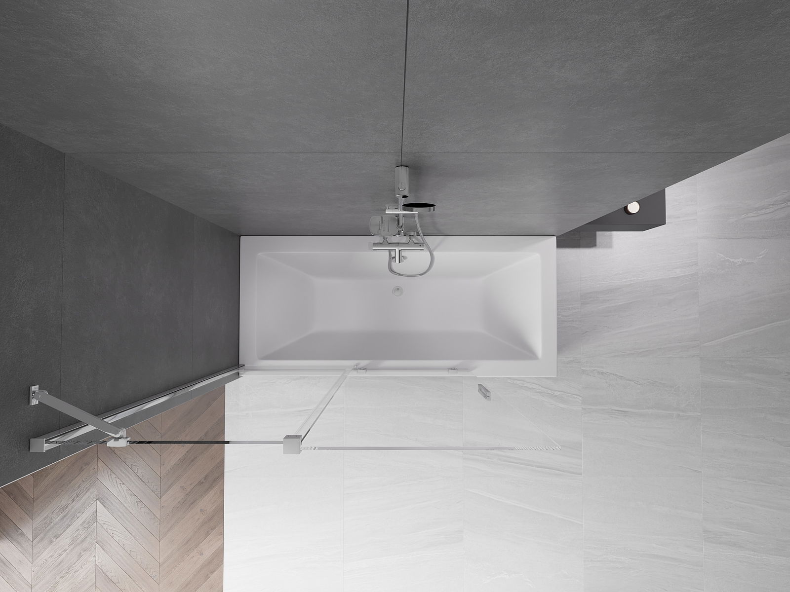 Dank dem universellen Montagesystem kann de Paravent je no Bedierfness op der rietser oder lénkser Säit montéiert ginn. Sou kanns de eng Dusch plangen, déi op de Raum vun der Buedzëmmer ugepasst ass.