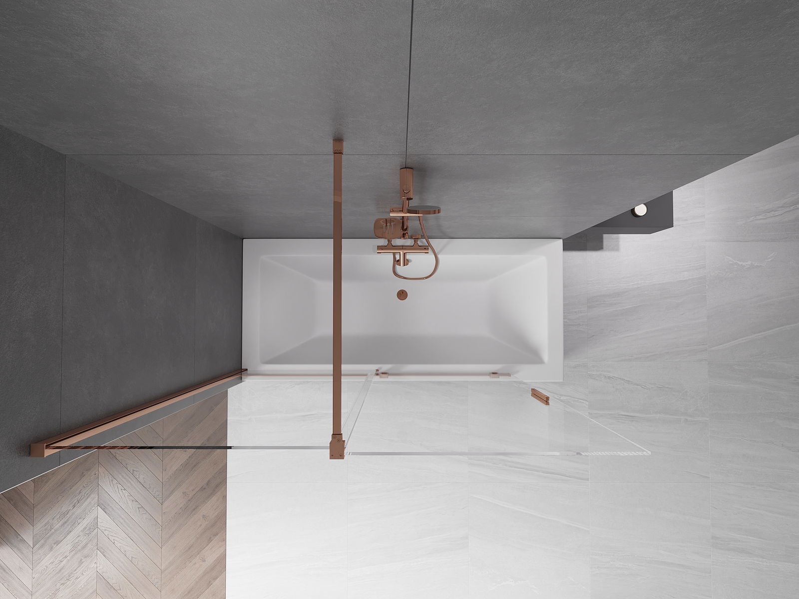 Mexen Velar zwee-deeleger verréckelbare Badduschwand 150 x 150 cm, transparent, rose Gold - 896-150-000-01-60