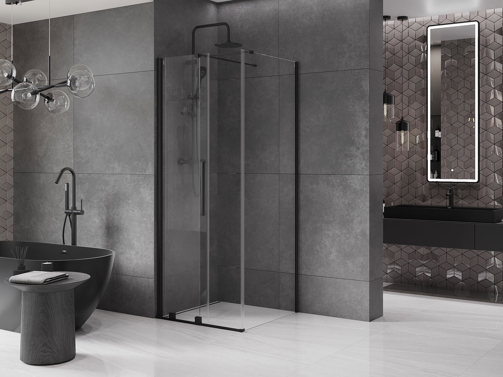 En handlecht a komfortabele Grëff ass aus Edelstol gemaach. E modernen Design an enger Ofschloss der Faarf vun de Profiler ugepasst, gëtt et en moderne a stilvolle Look, deen d'Aesthetik vun all Buedzëmmer ervirhieft.