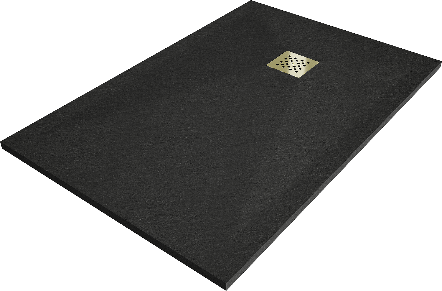 Mexen Stone+ rektangulär Kompositduschbecken 140 x 90 cm, schwaarz, gëllene Verkleedung - 44709014-G