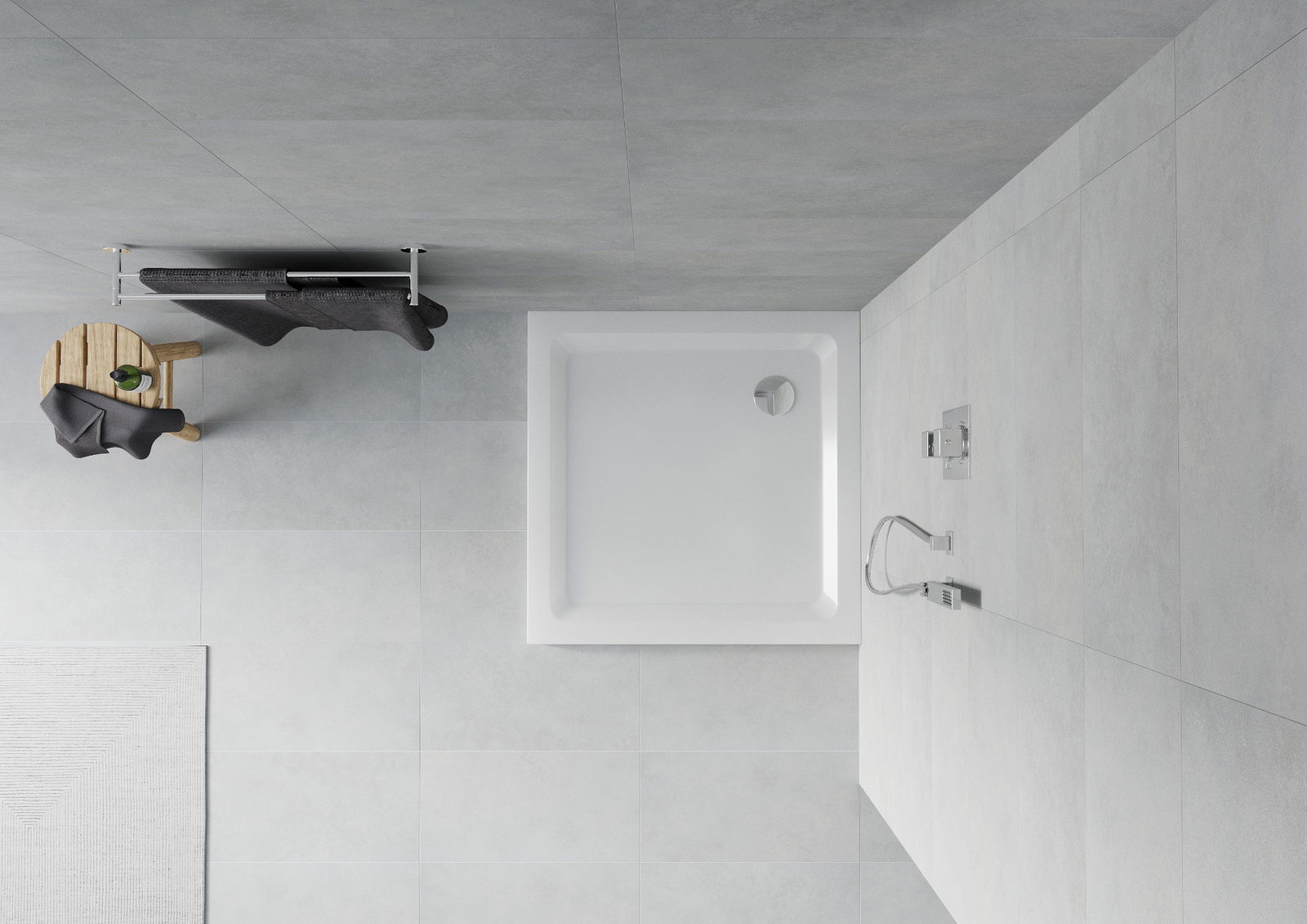 Den Douchebueden ass esou entwéckelt, datt d'Waasser fräi an d'Richtung vum Oflaaf kann oflafen. Et garantéiert en schnellen an effizienten Ofleedung vum Waasser vun der Uewerfläch vum Douchebued, fir d'Entstoe vu Pätz a Läcken an der Buedzëmmer ze vermeiden.