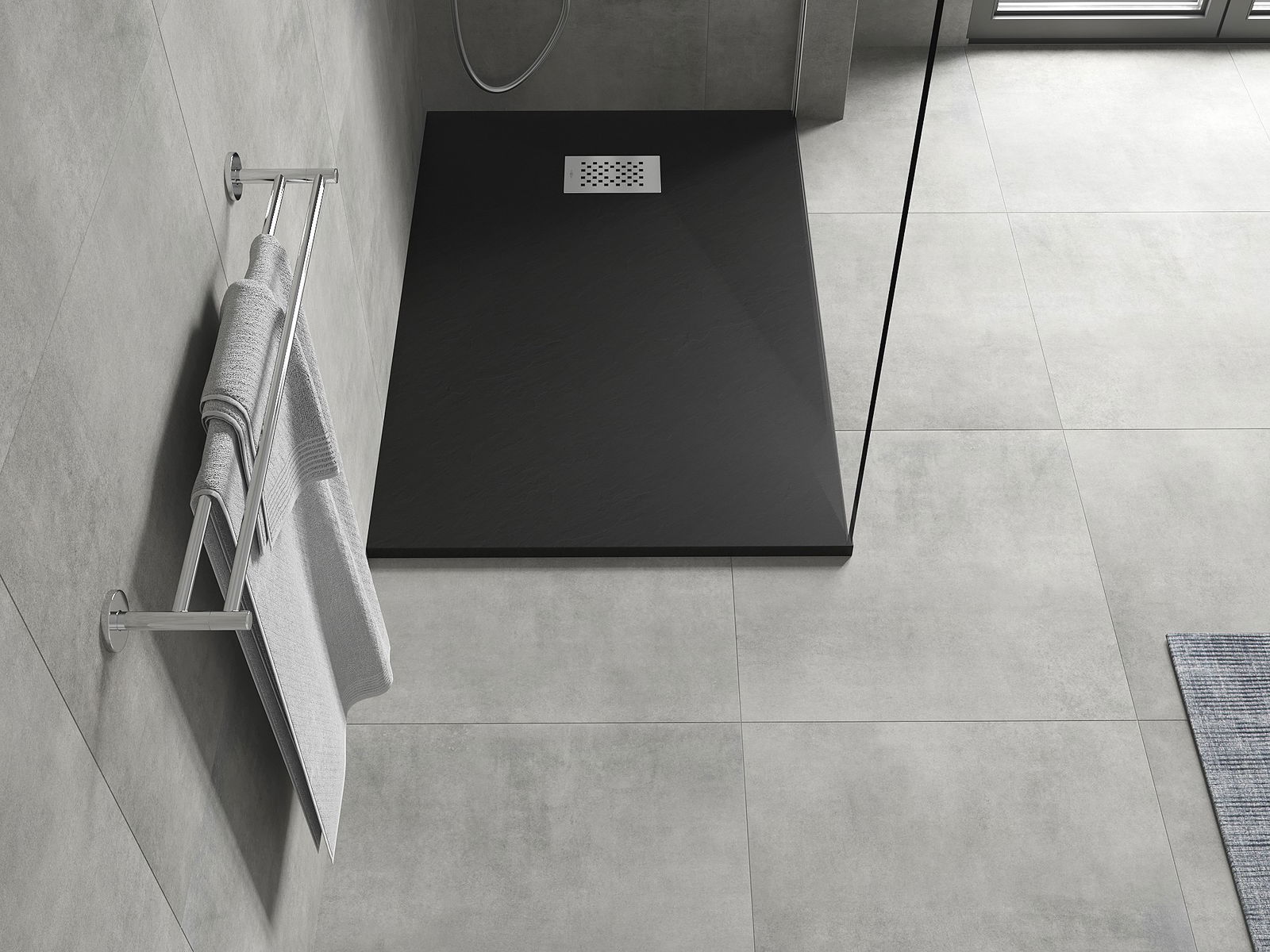 Déi geréng Héicht vum Douchebecken erlaabt eng traditionell Installatioun op de Buedem oder andeems se an de Buedem gesat gëtt, déi eng aussergewéinlech, eenheetlech Uewerfläch schaaft. D'Flexibilitéit vun der Installatioun erlaabt de Douchebecken un verschidden Interieurarrangementer unzepassen.